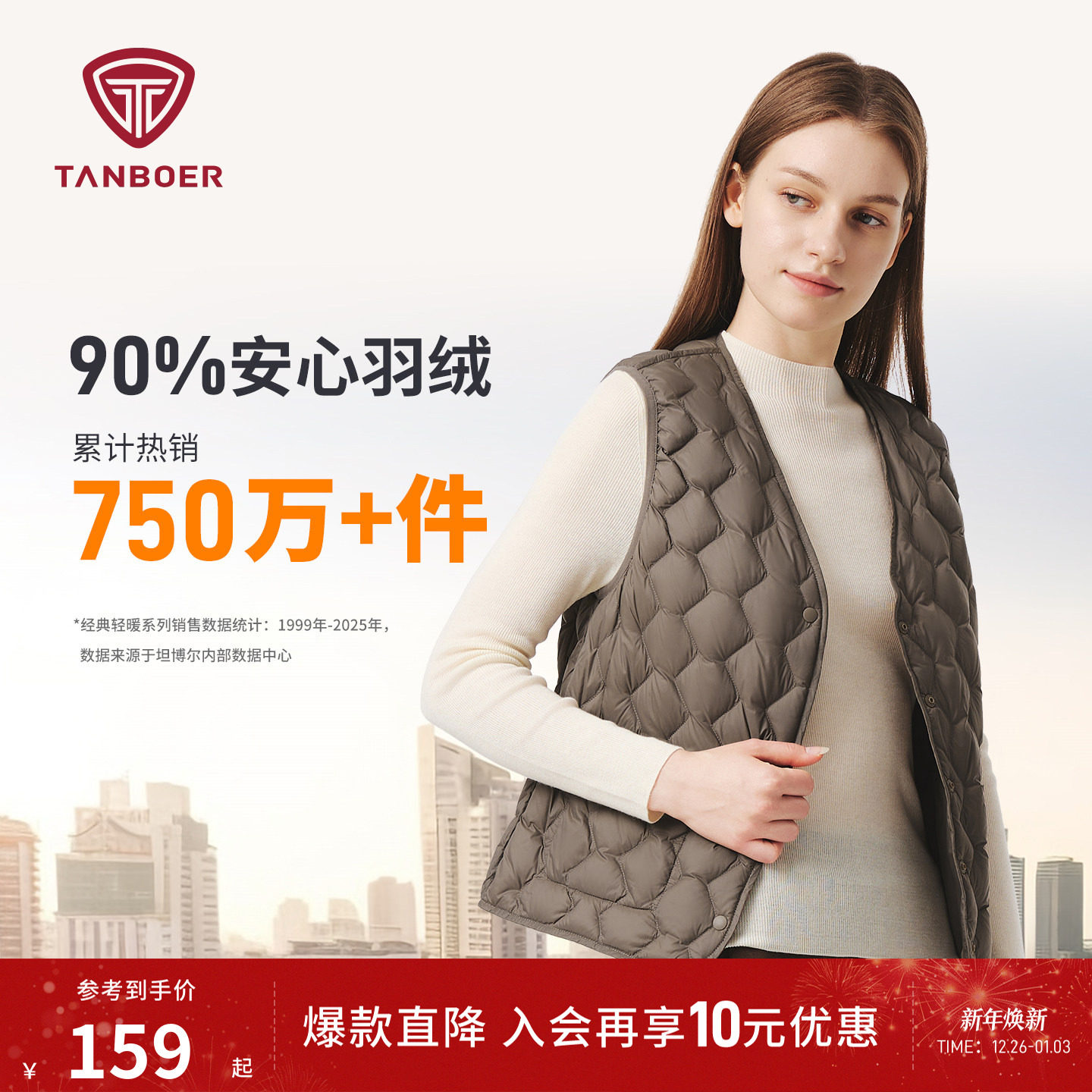 坦博尔25年秋冬季新款轻薄羽绒马甲女士短款V领百搭舒适内恤坎肩