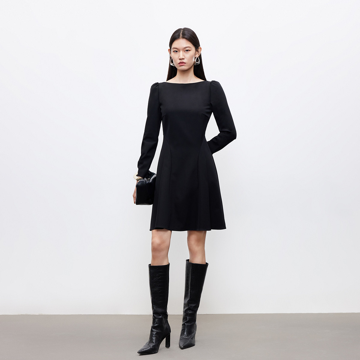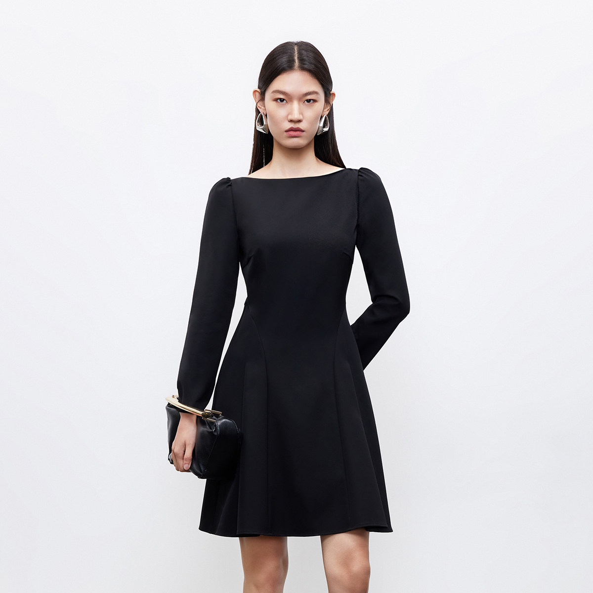 12.3上新Vero Moda连衣裙女2026早春新款泡泡袖A字收腰小黑裙优雅