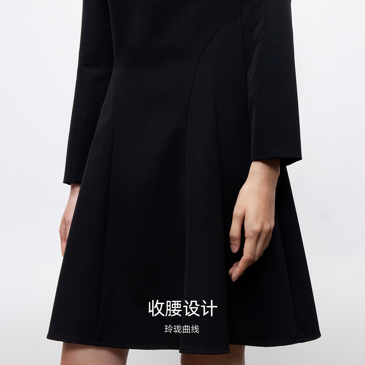 圆领领型 大气优雅;后身隐形拉链 方便穿脱