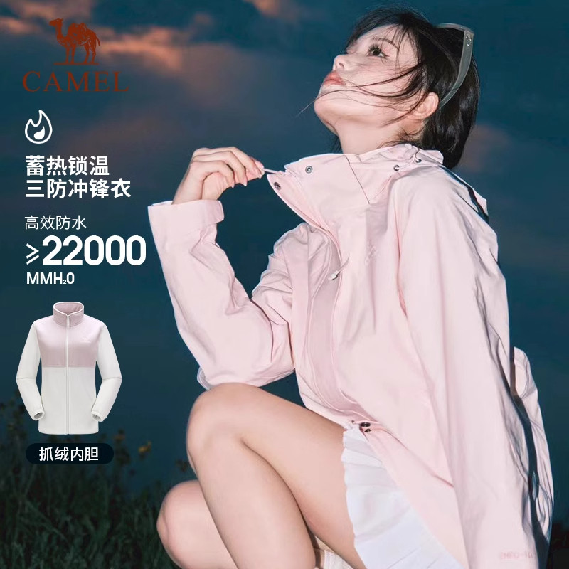 骆驼户外冲锋衣女三合一2025春季新款防水女装风衣外套旗舰店正品