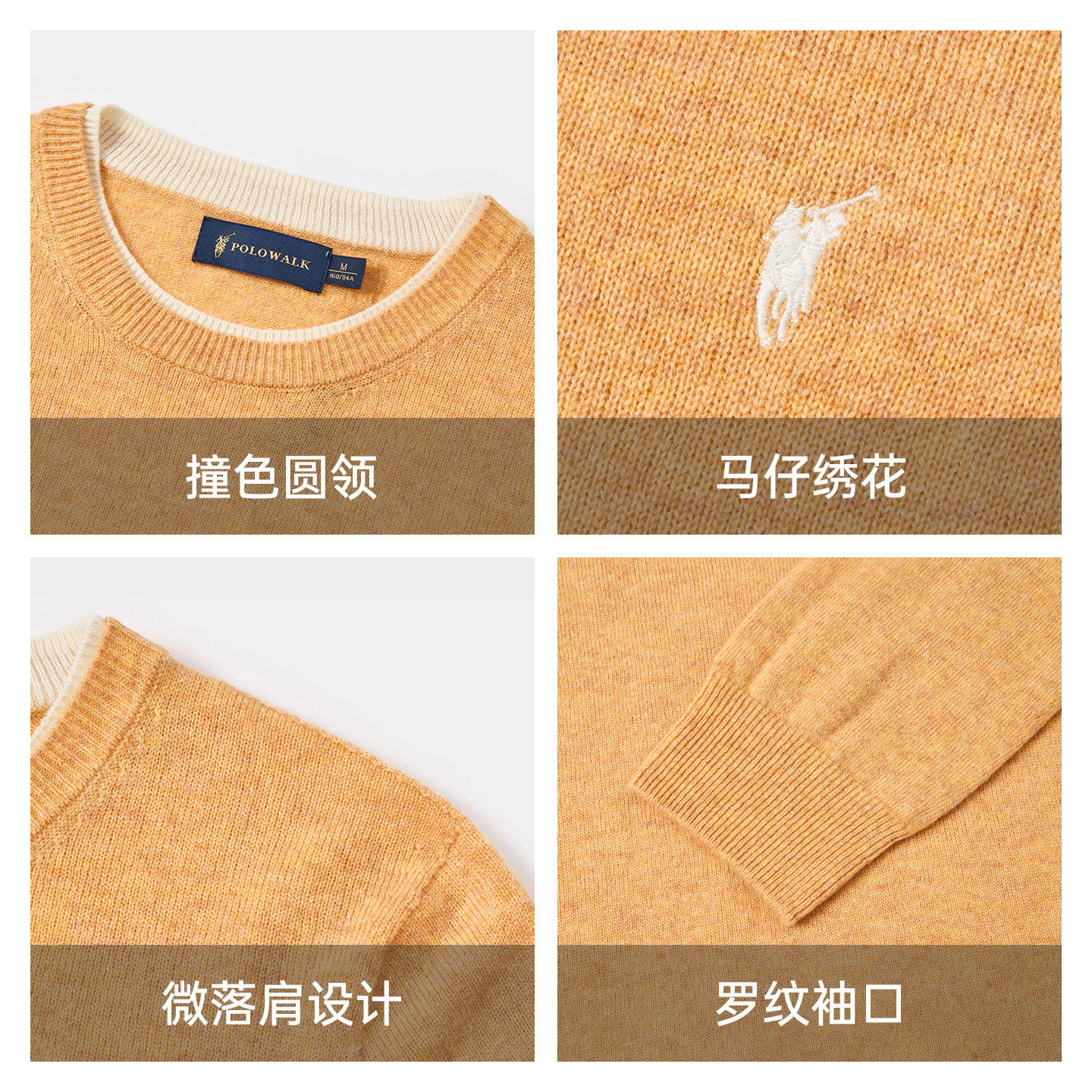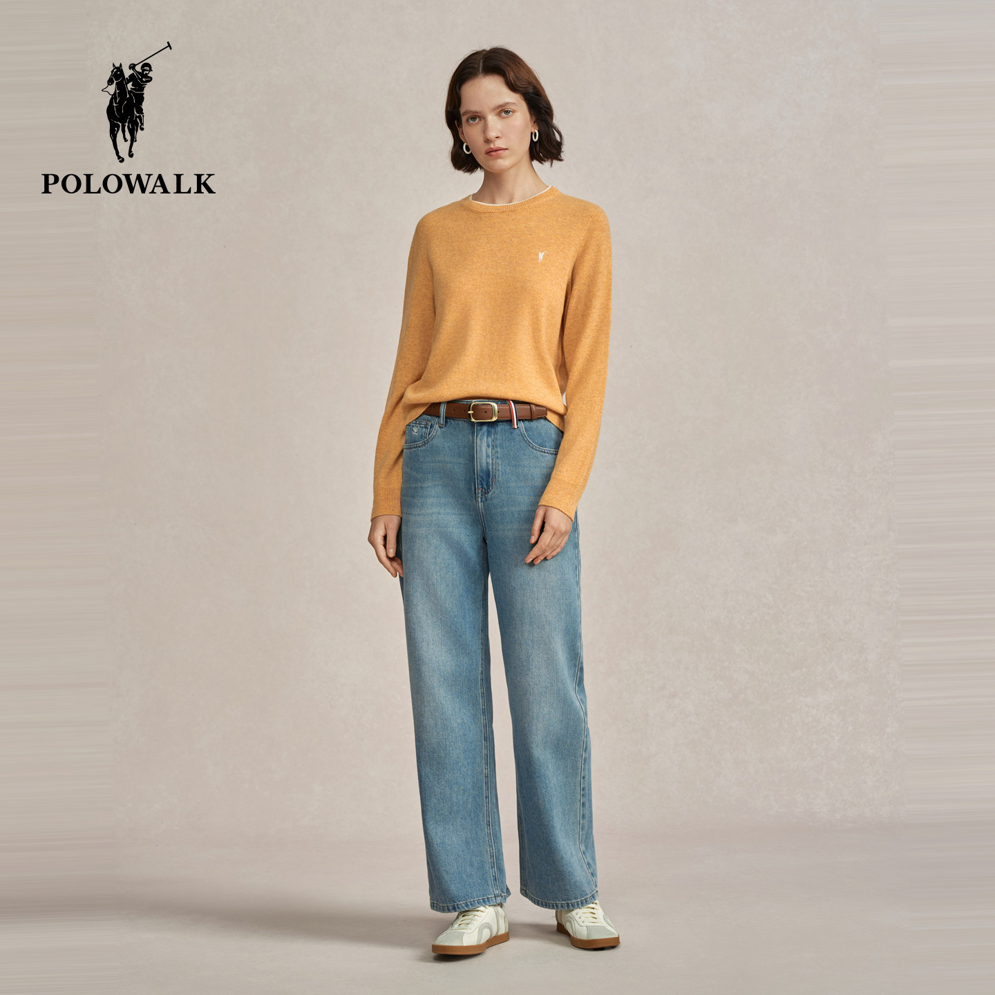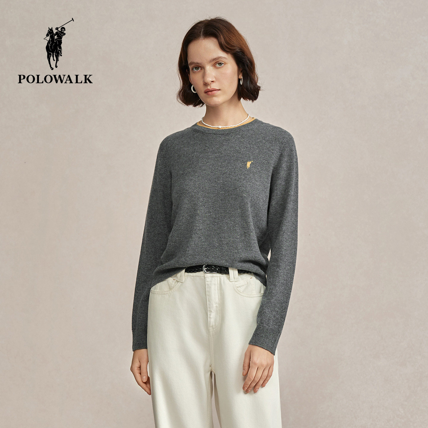 【100%绵羊毛】POLOWALK女装羊毛衫2025秋冬保暖圆领针织毛衣红色
