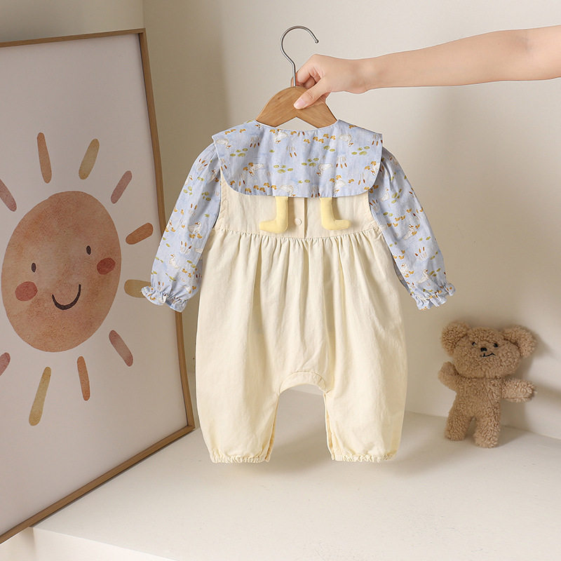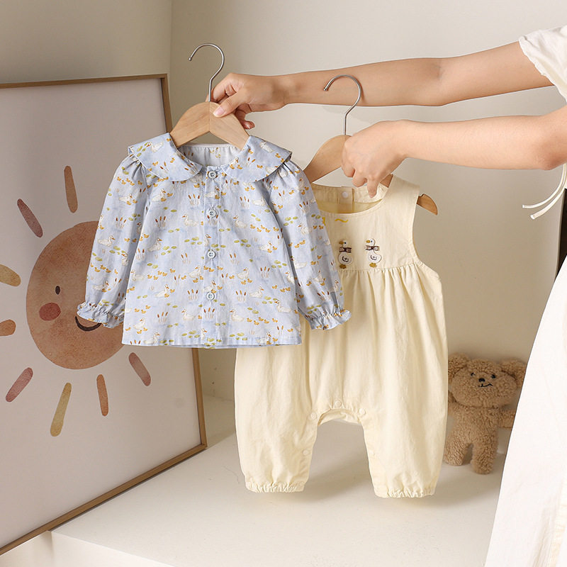 婧麒女童秋装套装2025新款小童装宝宝上衣背带裤春秋时髦婴儿衣服