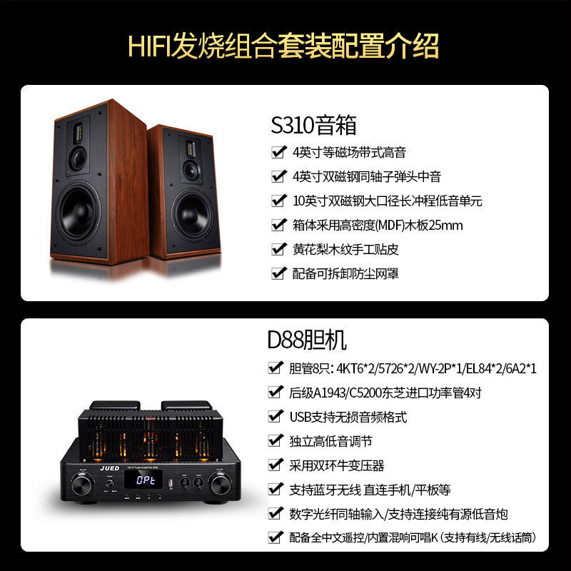 JUED君笛 S310发烧胆机组合音响套装三分频10寸书架hifi音箱家用