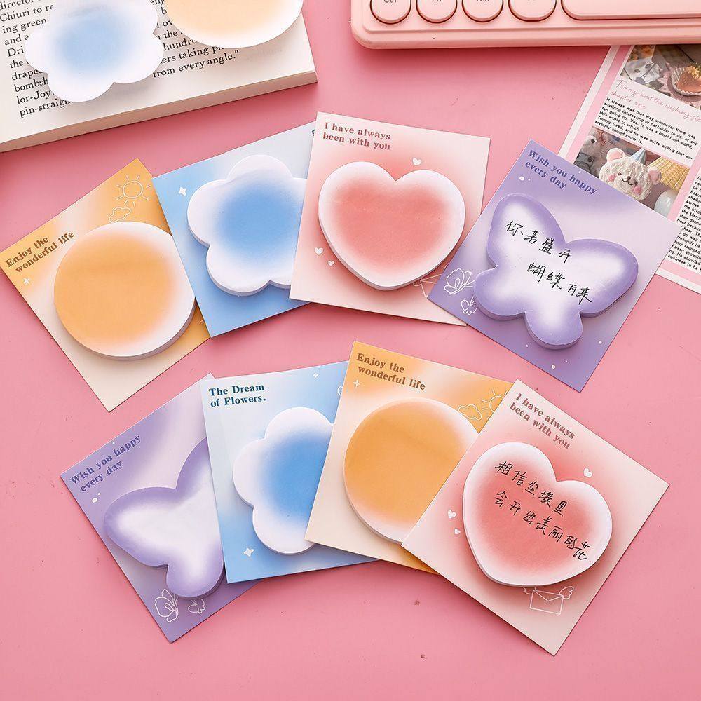 彩色腮红光晕渐变便利贴异形爱心强粘性便签纸贴纸便签n次贴小红书同款渐变爱心蝴蝶腮红便利贴有粘性便签纸