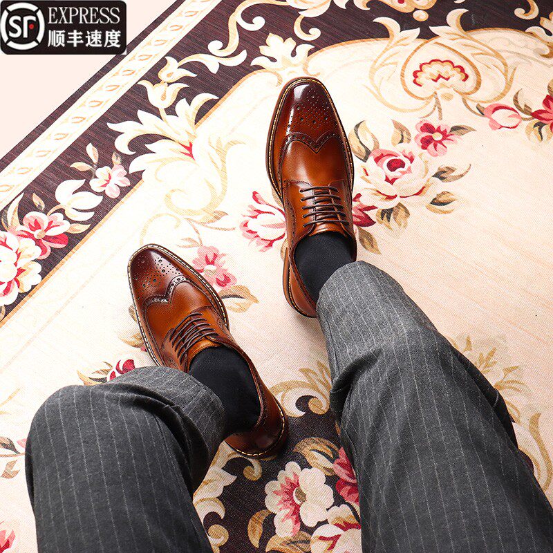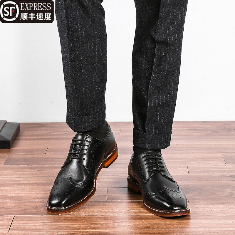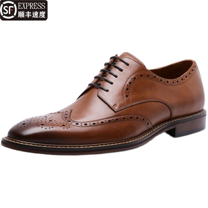 英伦风布洛克男鞋内增高结婚鞋棕色商务真皮男士增高正装皮鞋方头