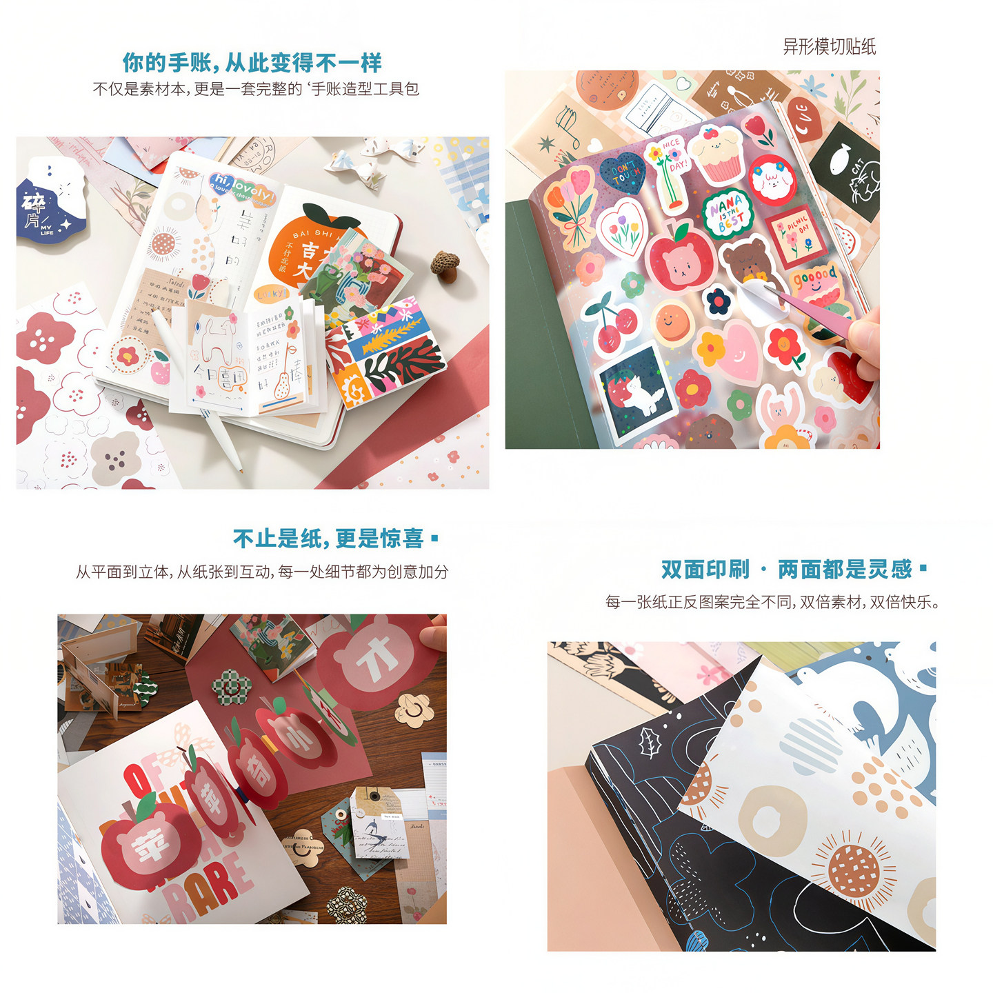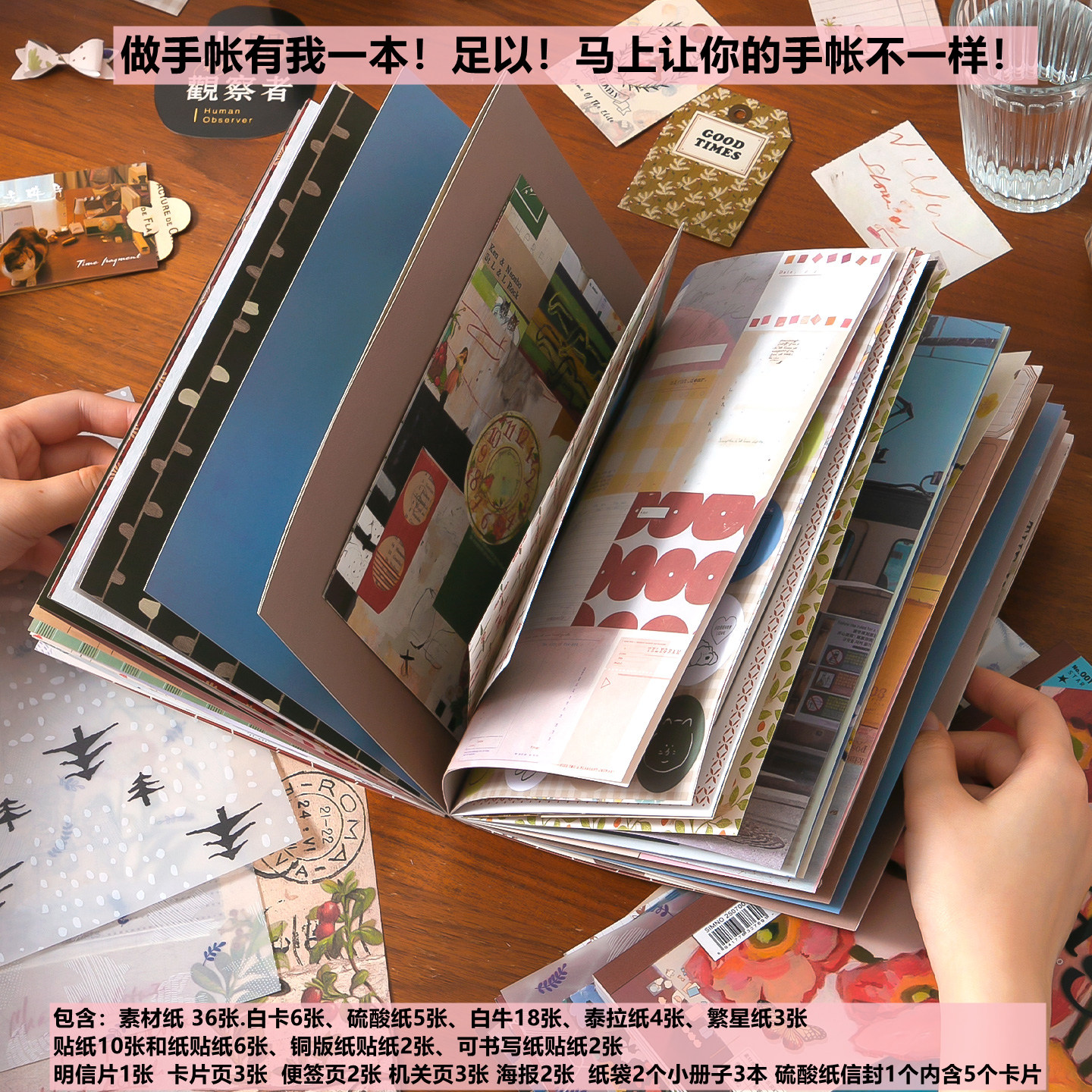 (全能手账素材装备箱)免剪手账本DIY素材包全套手帐素材本贴纸机关便签工具材料明信片硫酸纸背景纸手帐本