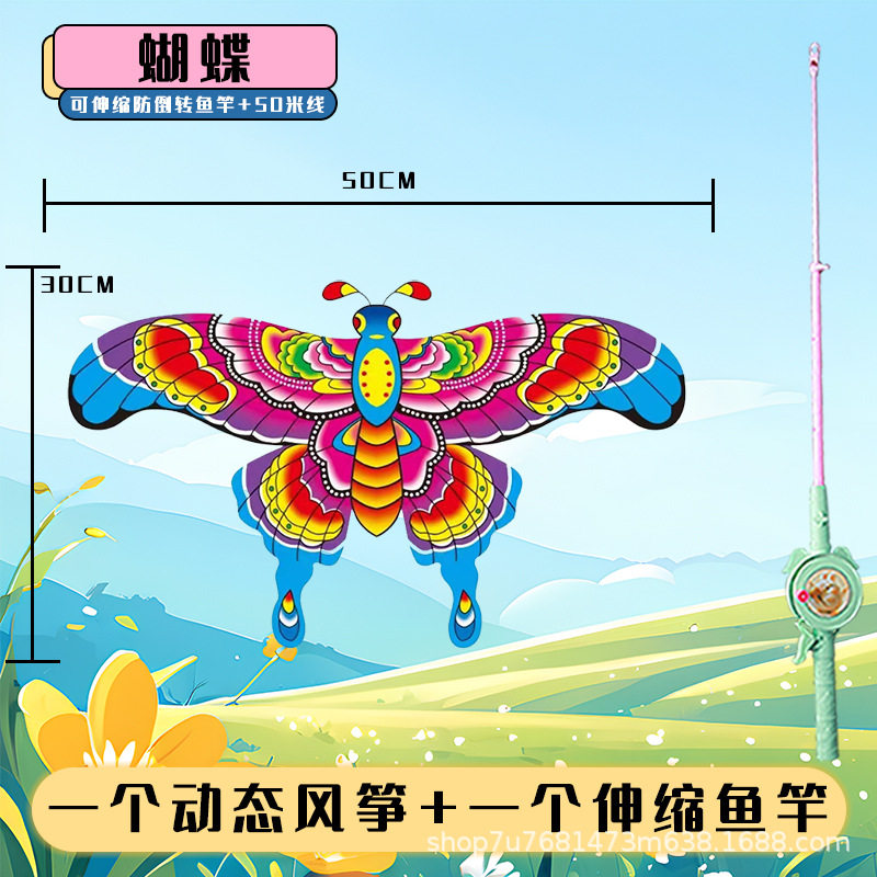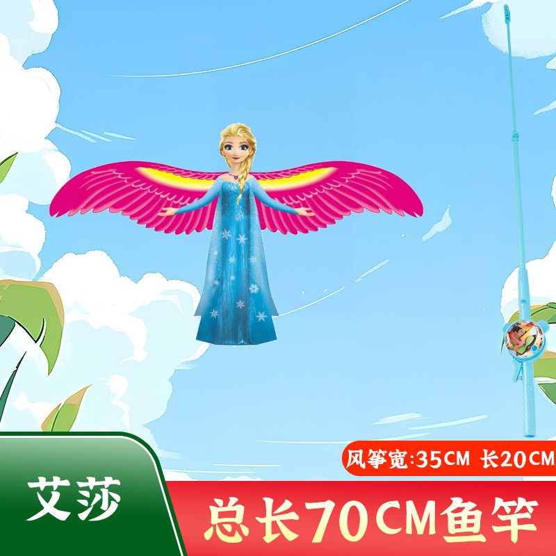 新款鱼竿动态风筝 2024年微风易飞卡通手持鱼竿风筝 手持小风筝