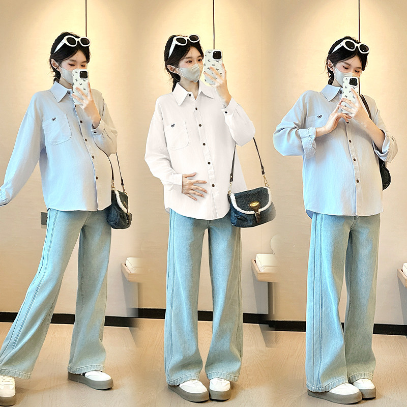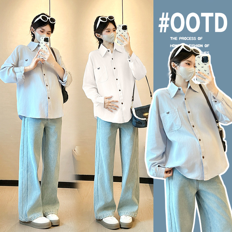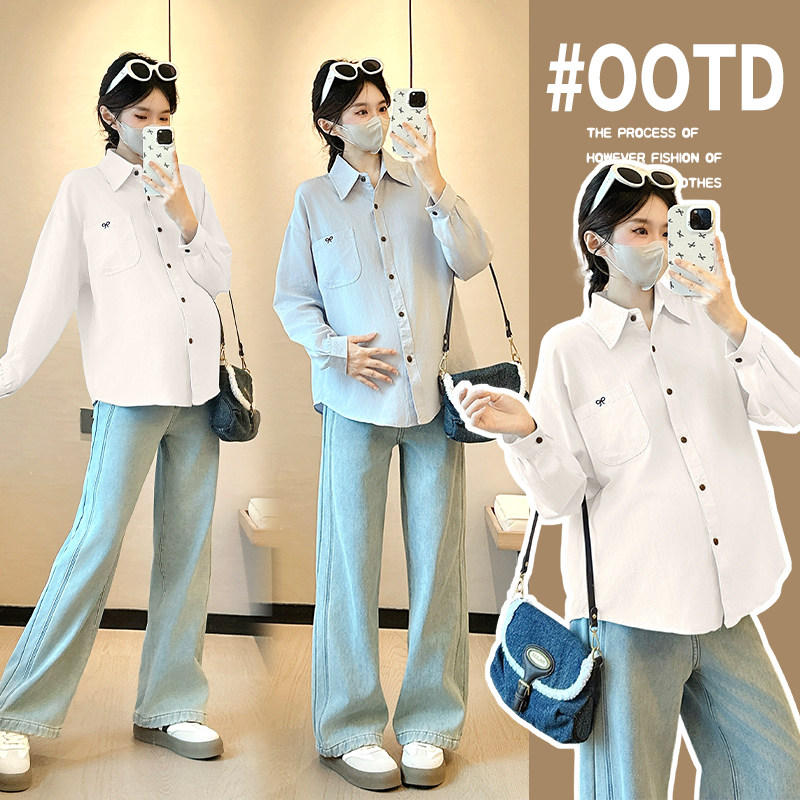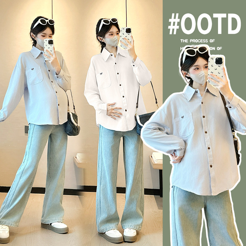 婧麒孕妇衬衫春装2026新款长袖宽松显瘦遮孕肚上衣春秋休闲衬衣