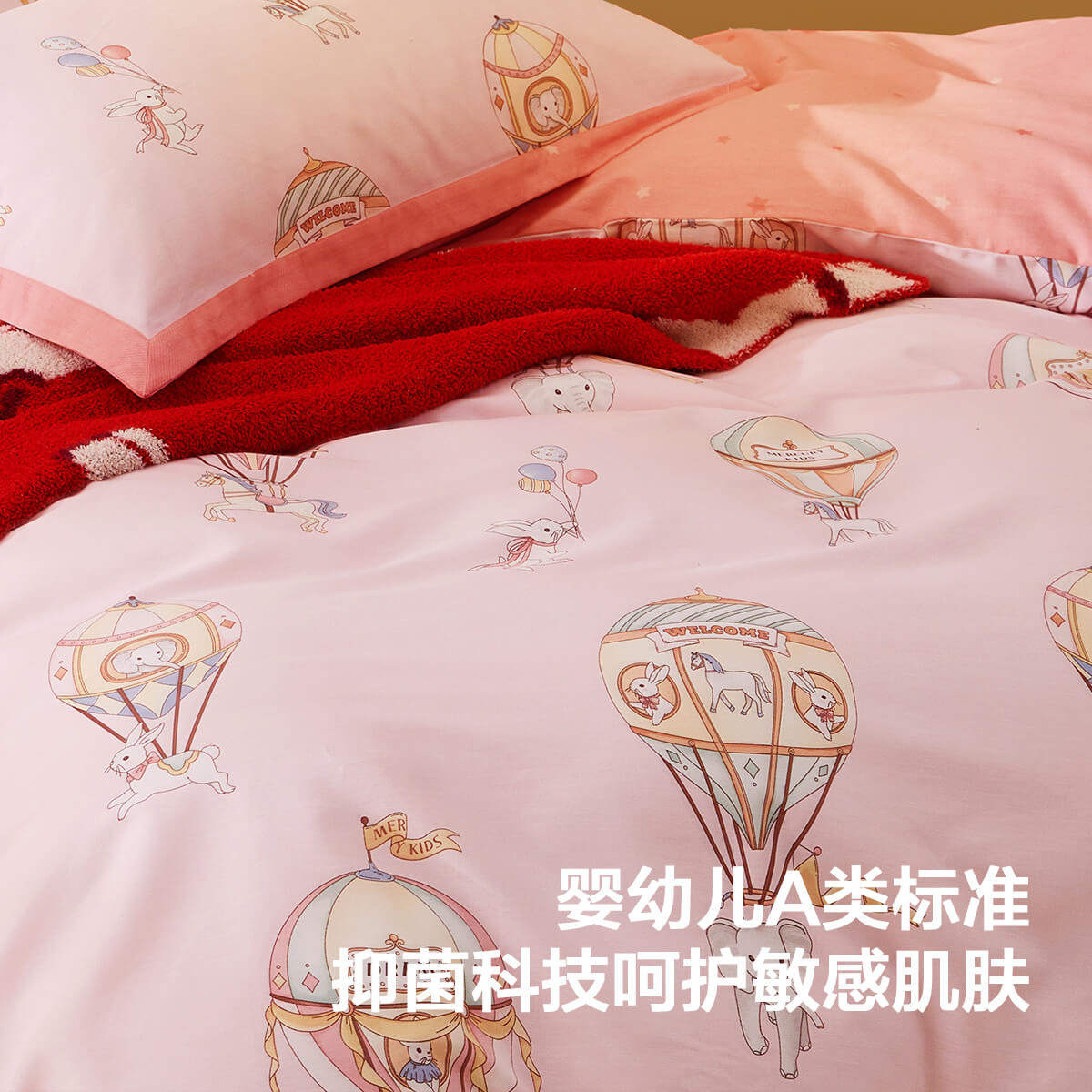 水星家纺全棉磨毛三/四件套A类抗菌套件儿童卡通秋冬保暖床单被套