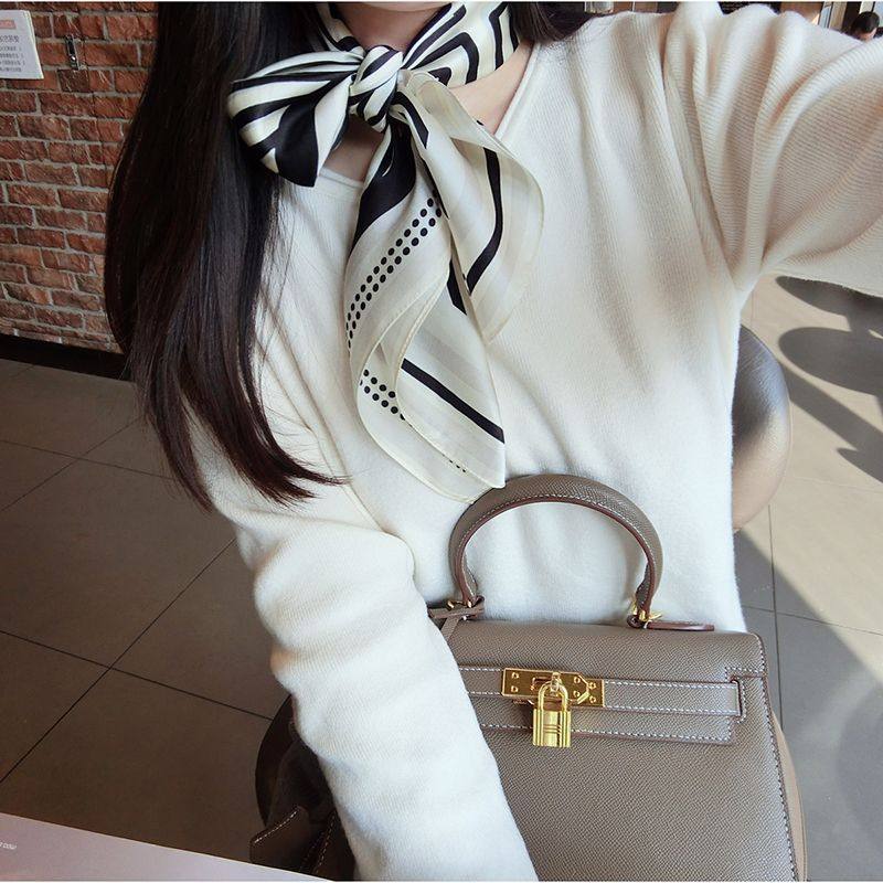 2024新款四季百搭长条小丝巾女薄款洋气高级黑白围脖领巾韩式围巾