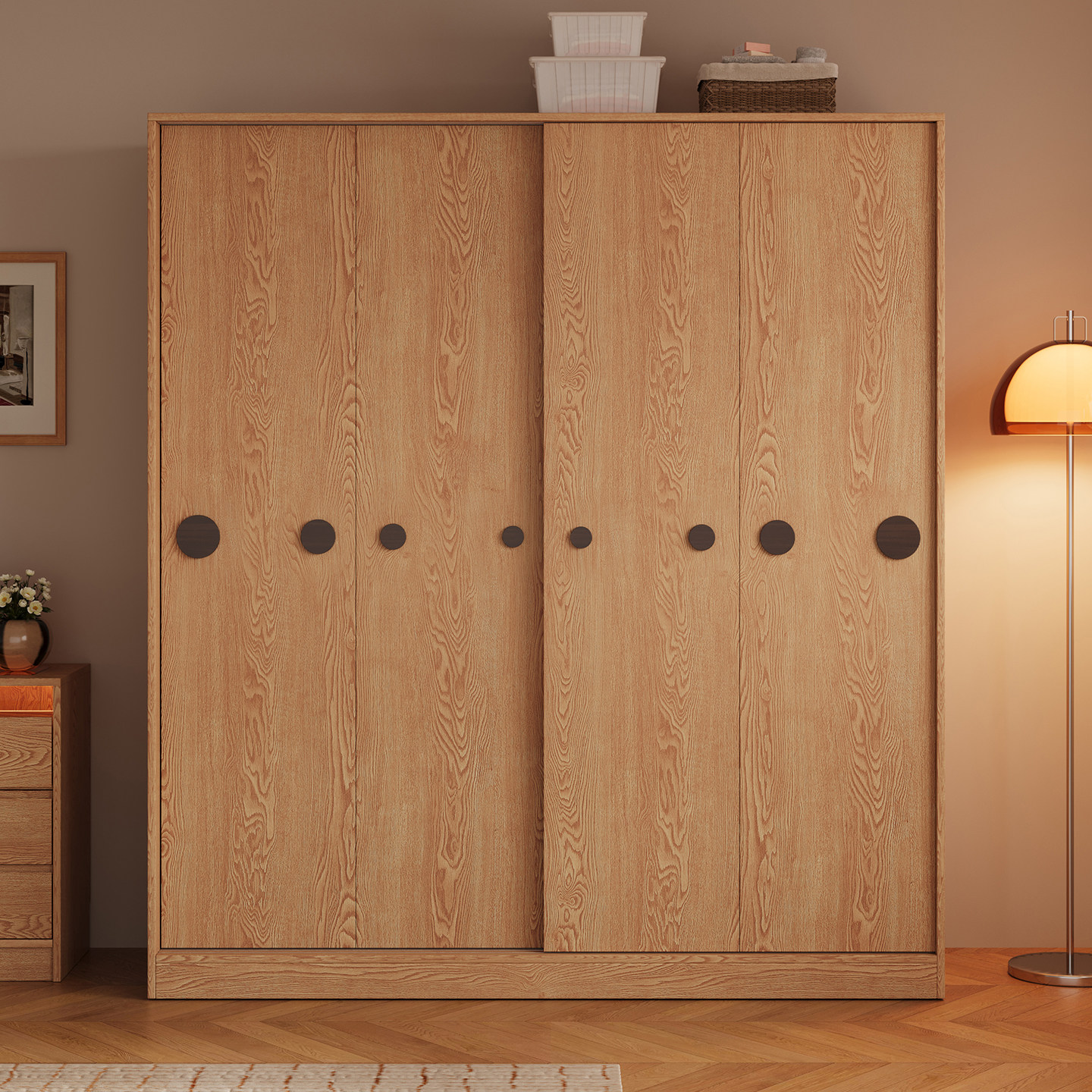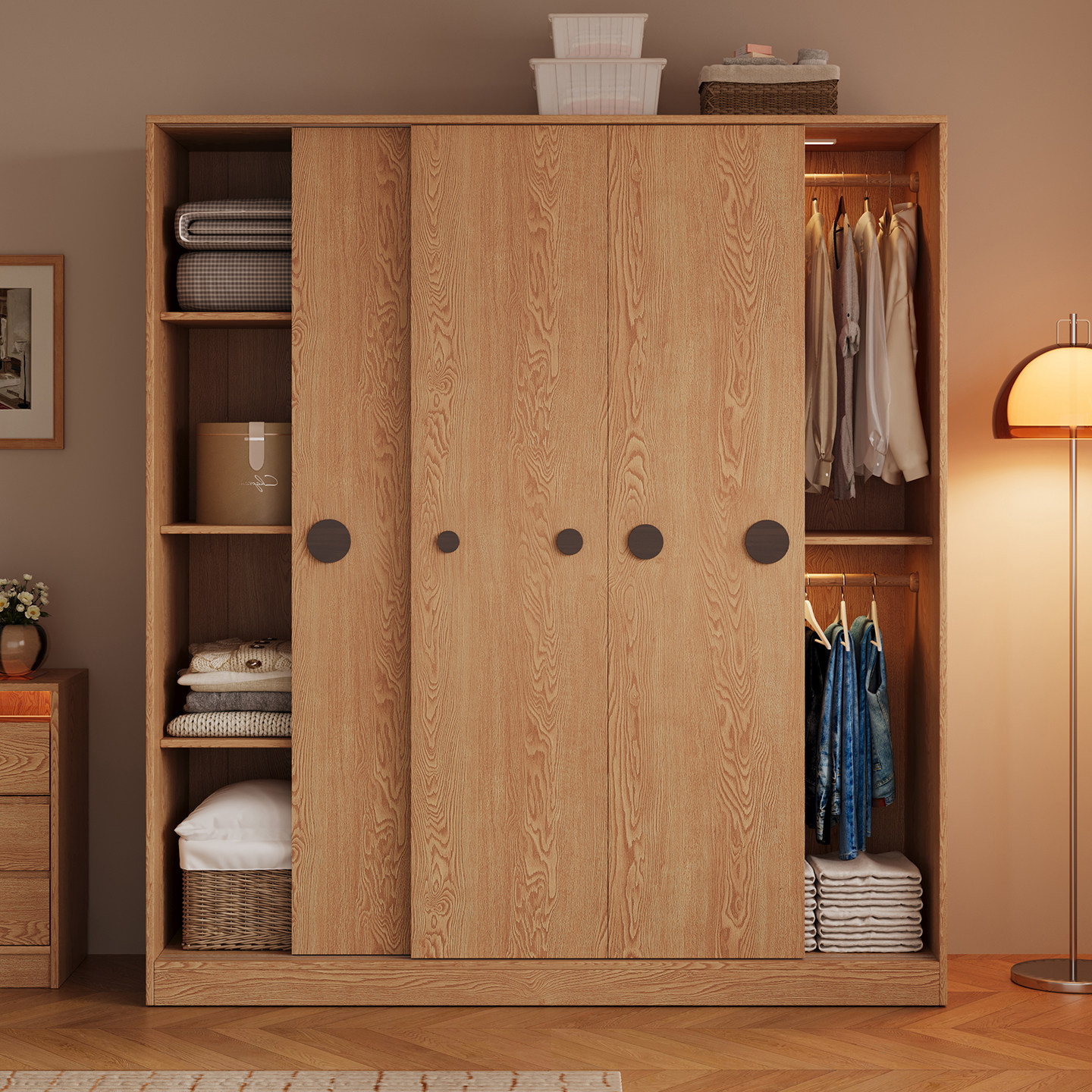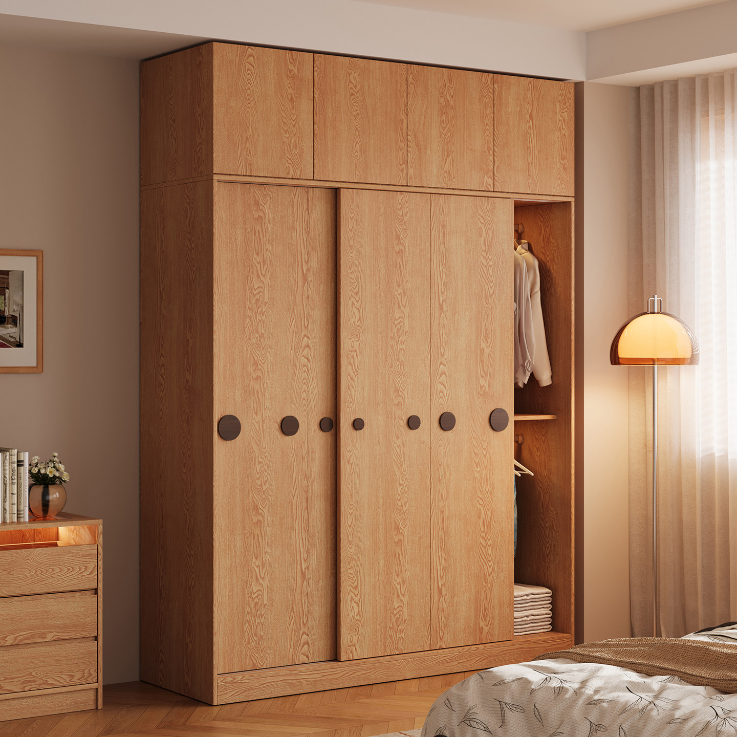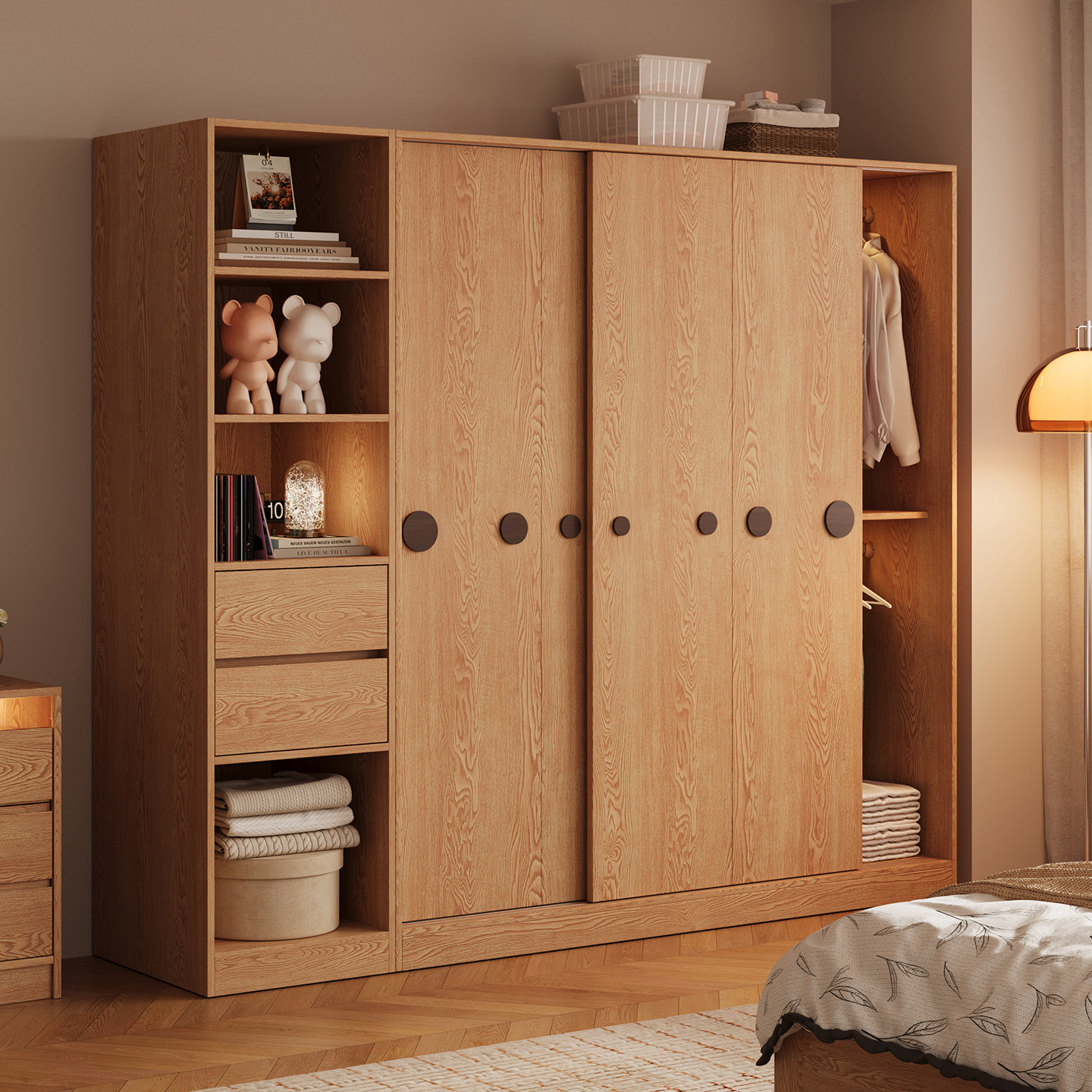 木兜家具泡泡衣柜家用卧室儿童实木推拉门衣柜原木风衣服收纳衣橱