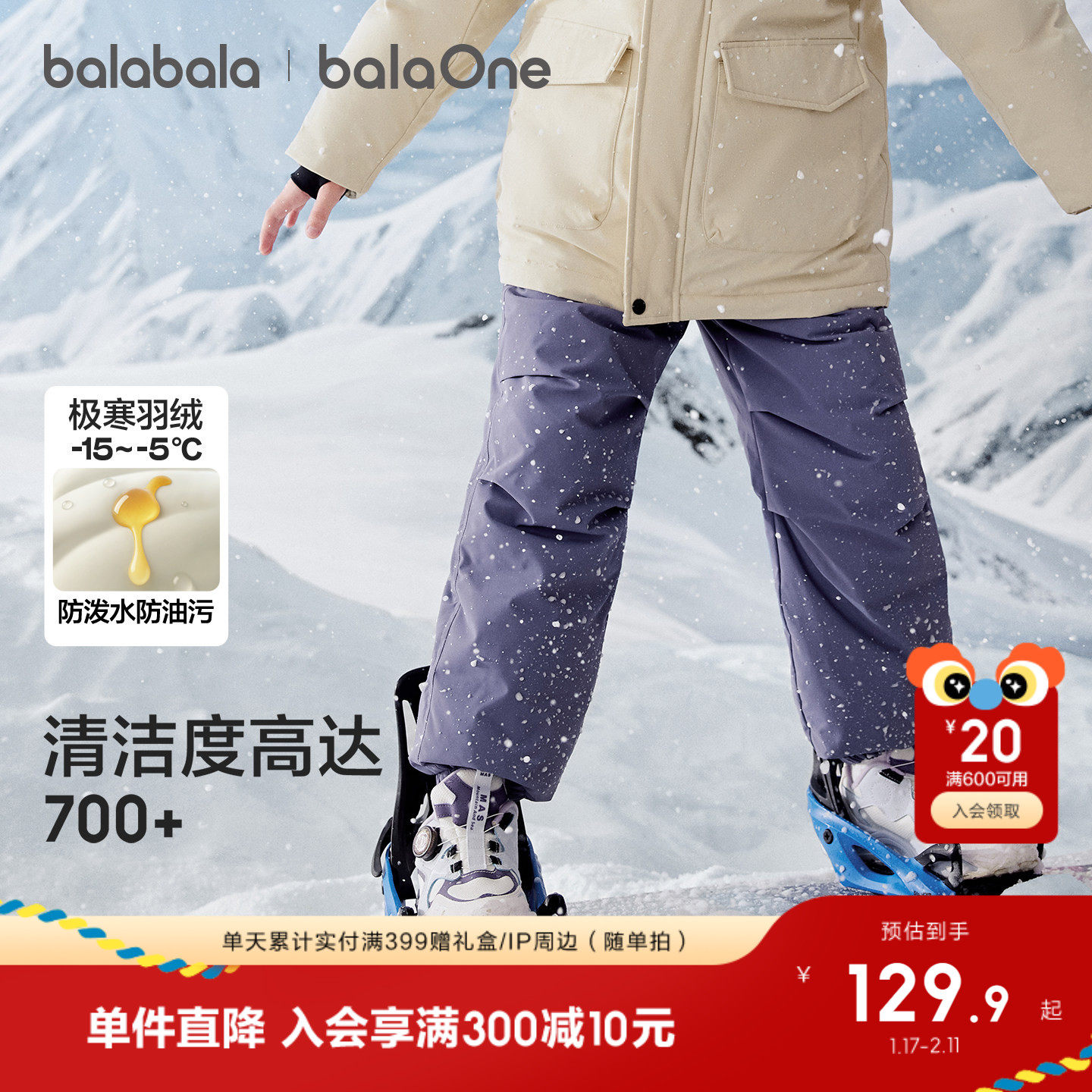 巴拉巴拉童装儿童羽绒裤男童女童2025冬装新款保暖长裤子加厚滑雪
