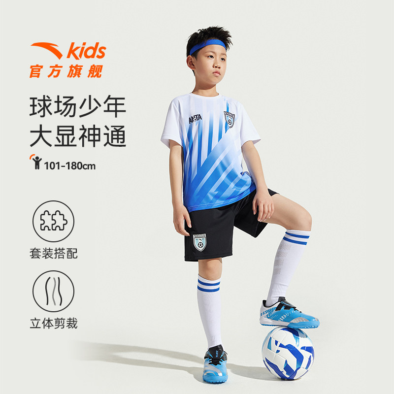 安踏儿童男童足球比赛套2025夏季新款透气舒适亲肤中大童短袖套装