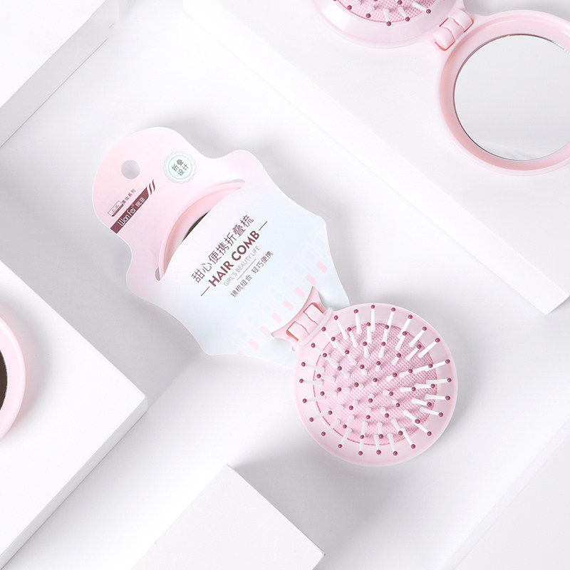 翻盖式折叠按摩梳子少女气囊梳子迷你随身可携式美发梳镜子化妆两