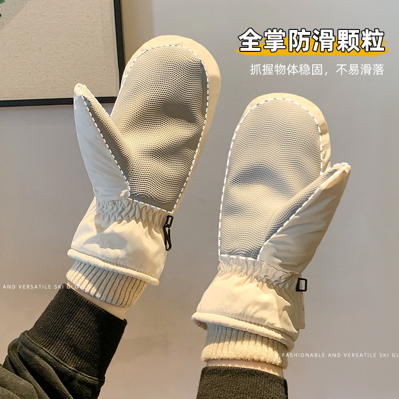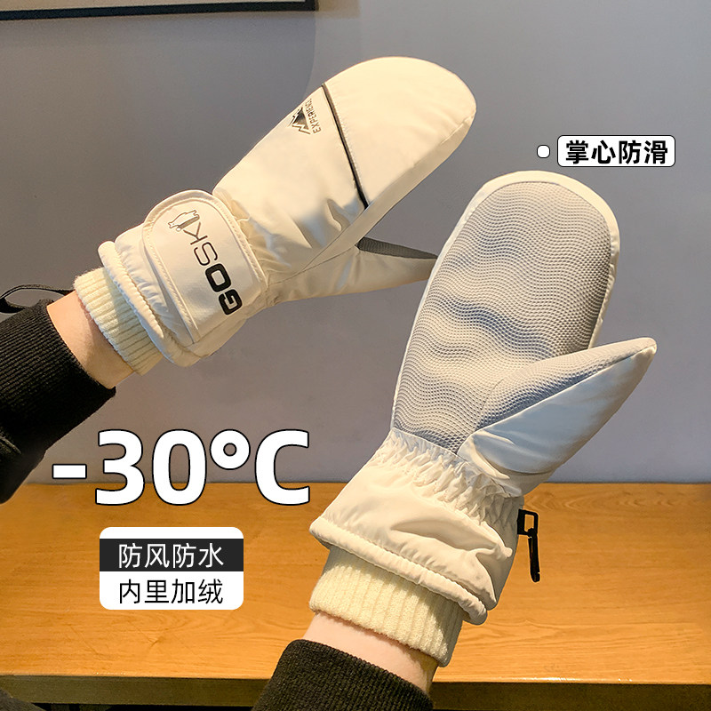 滑雪手套冬季女士新款连指保暖全掌防滑加绒加厚防水防风寒手闷子