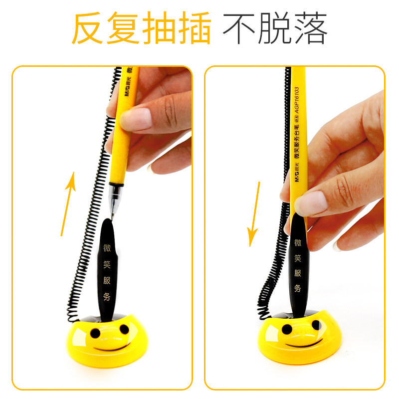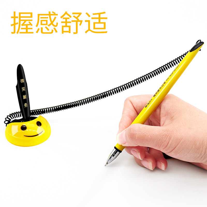 晨光台笔办公中性笔柜台桌面可粘贴固定带绳吧台笔银行前台碳素笔水笔粘桌黑色商务签字办公文具用品批发0.5