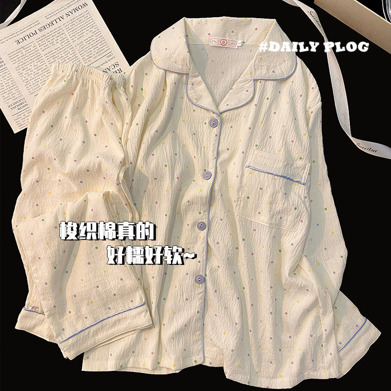 浪莎睡衣女春秋款纯棉长袖2025年新款秋冬大码薄款宽松开衫家居服