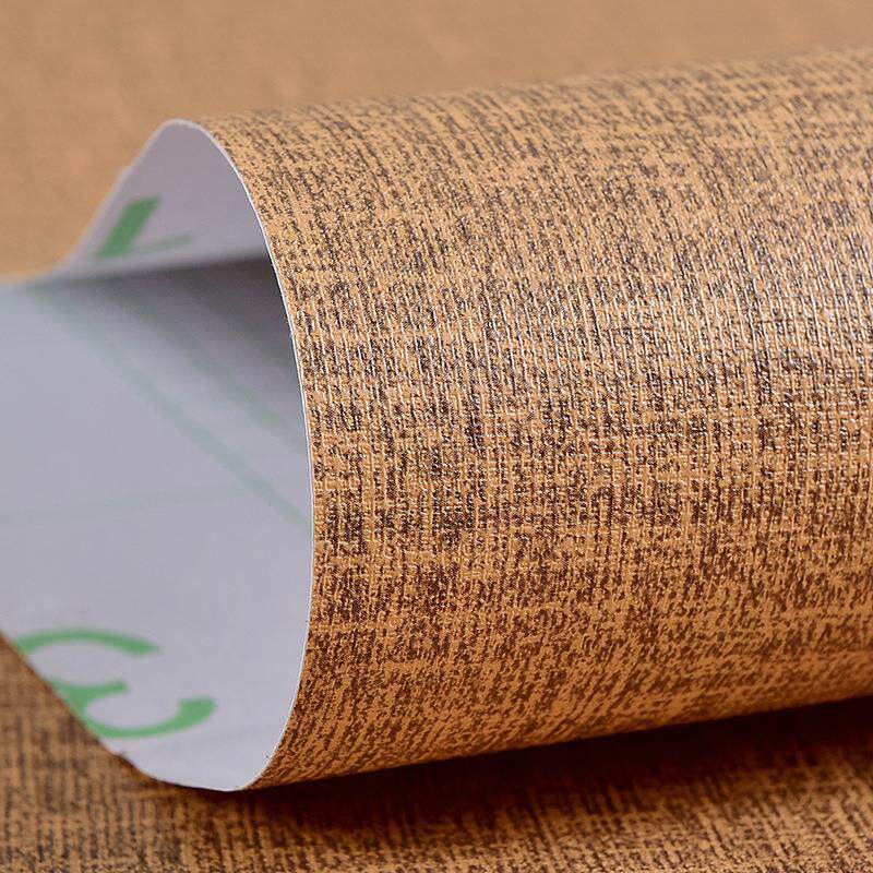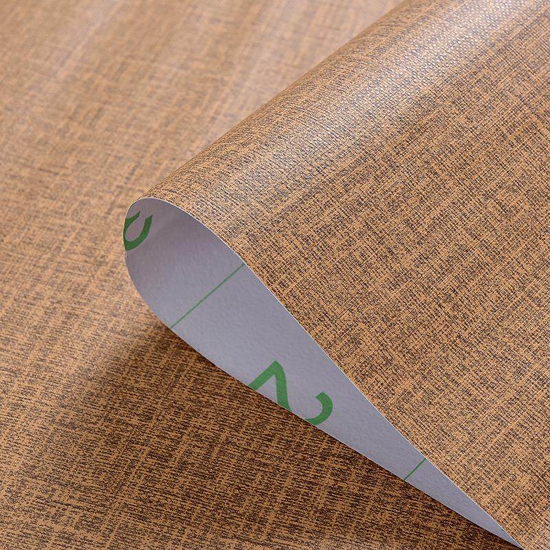 咖啡色PVC麻布自粘墙纸卧室客厅宿舍床头背景墙装饰翻新壁纸