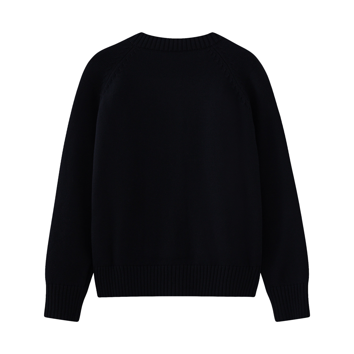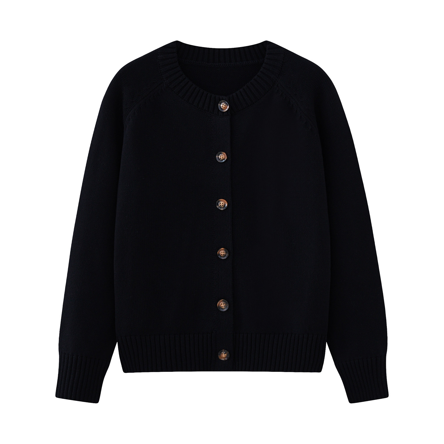 100%纯棉黑色开衫纽扣女士圆领毛衣外套外穿气质针织衫长袖厚款
