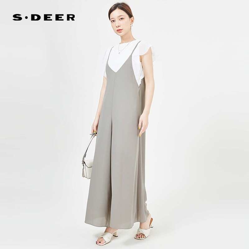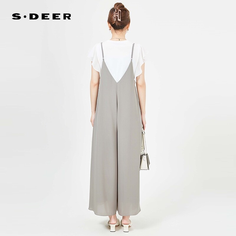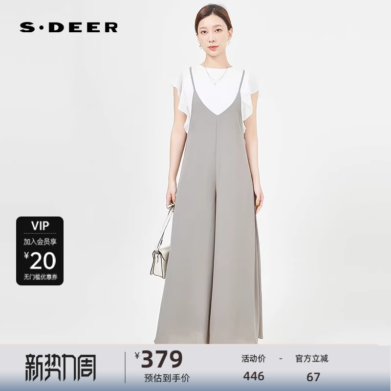 sdeer圣迪奥女装法式复古垂坠针织衫背带裤套装S242Z1446