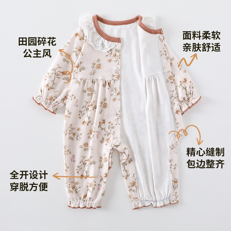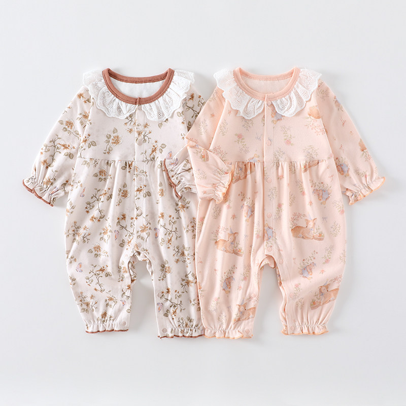 婴幼儿衣服秋冬季纯棉长袖打底哈衣满月宝宝爬服新生儿外出公主风