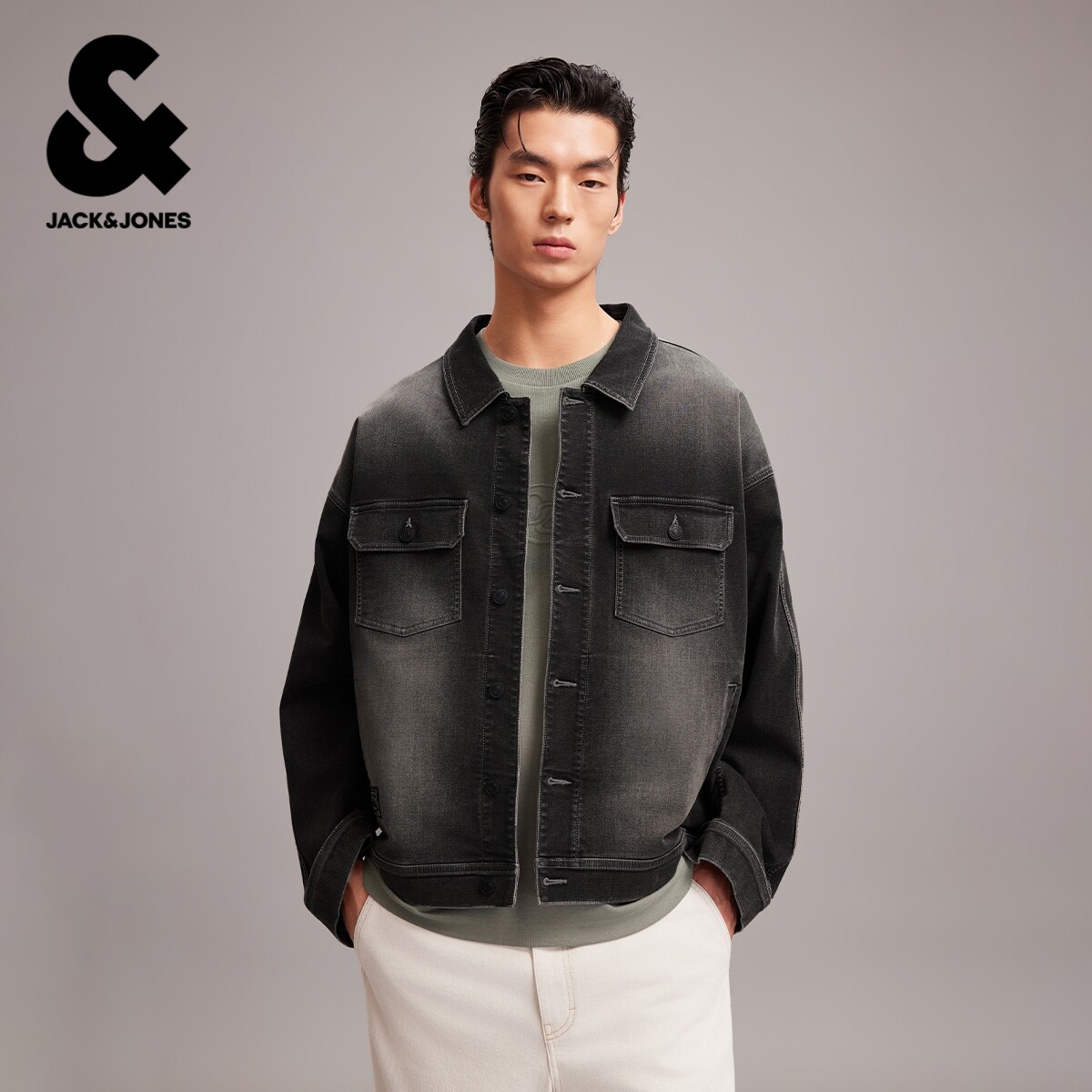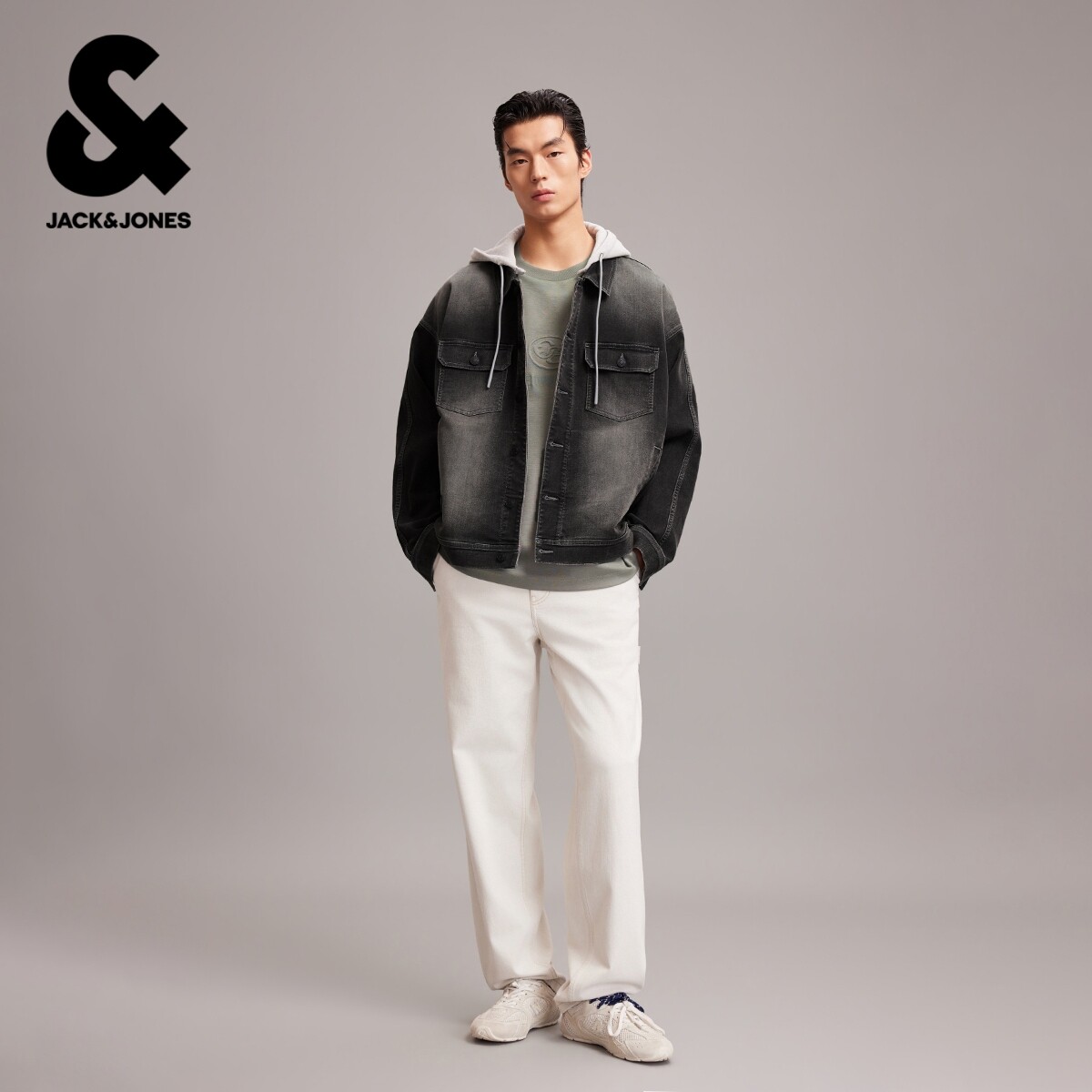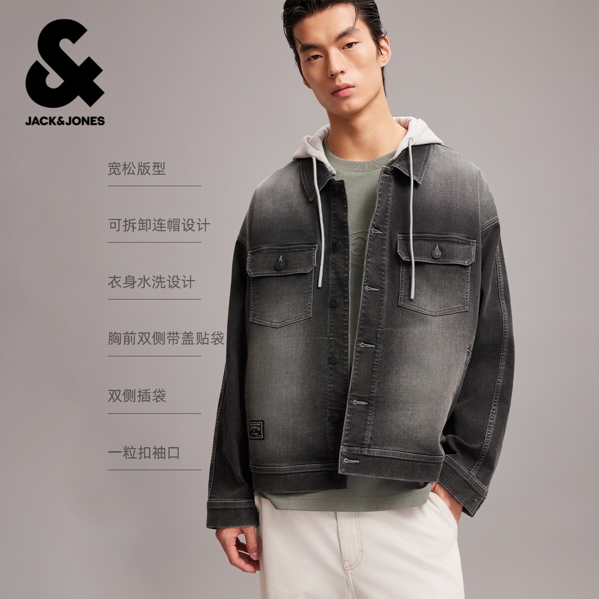 杰克琼斯男装春季新款宽松时尚水洗休闲百搭可拆卸连帽夹克外套