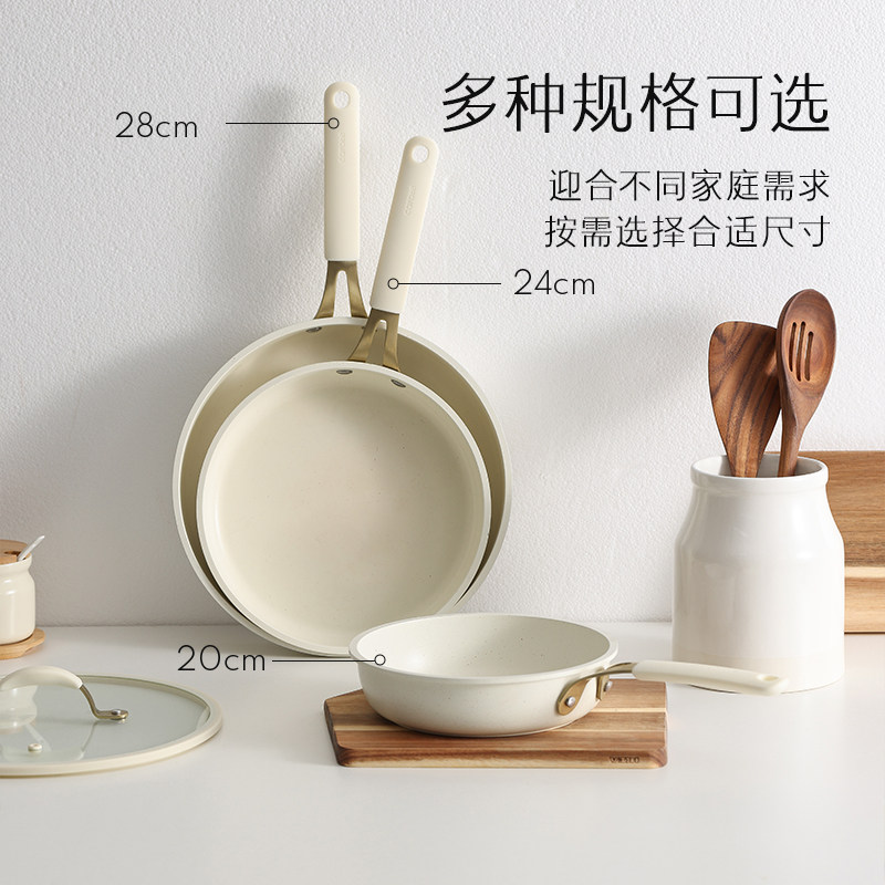荣事达钛陶瓷无涂层不粘锅平底锅家用牛排电磁炉煤气灶专用深煎锅