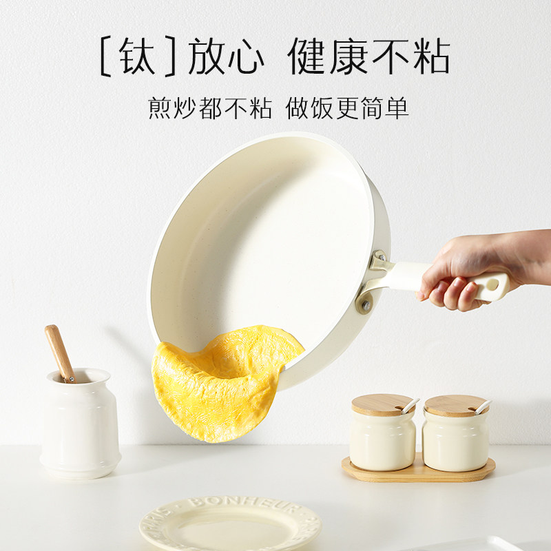 钛陶瓷聚油煎锅平底锅不粘锅家用牛排小煎锅煎蛋煎饼电磁炉专用N