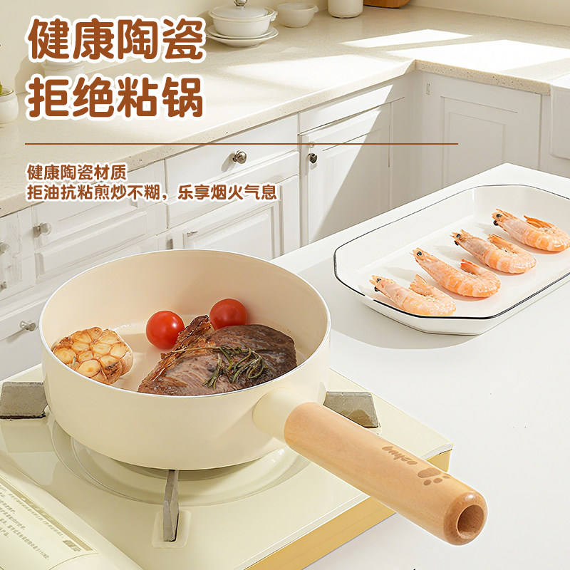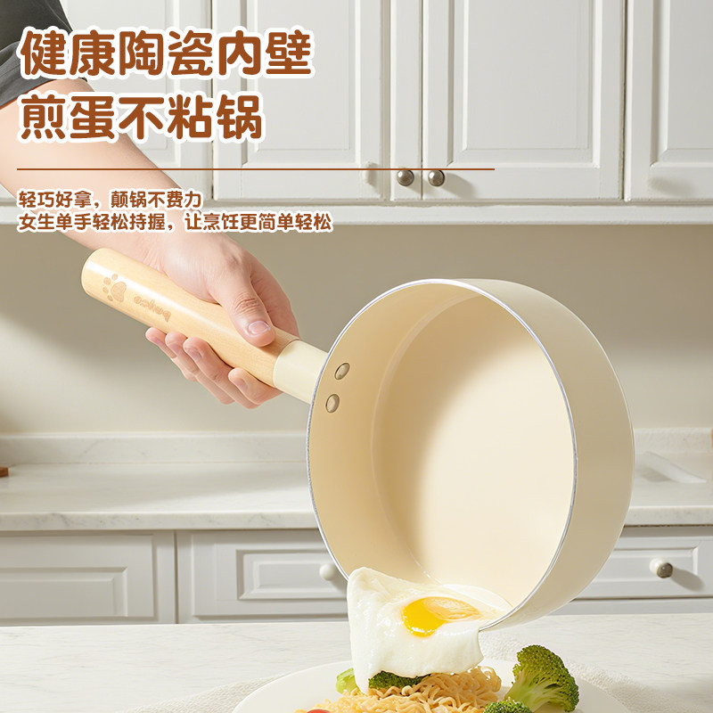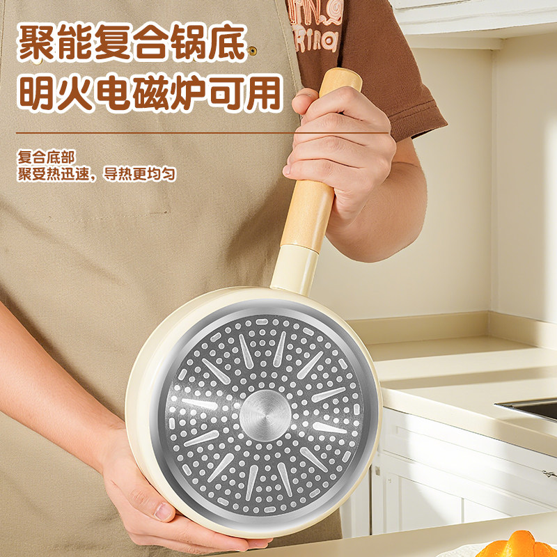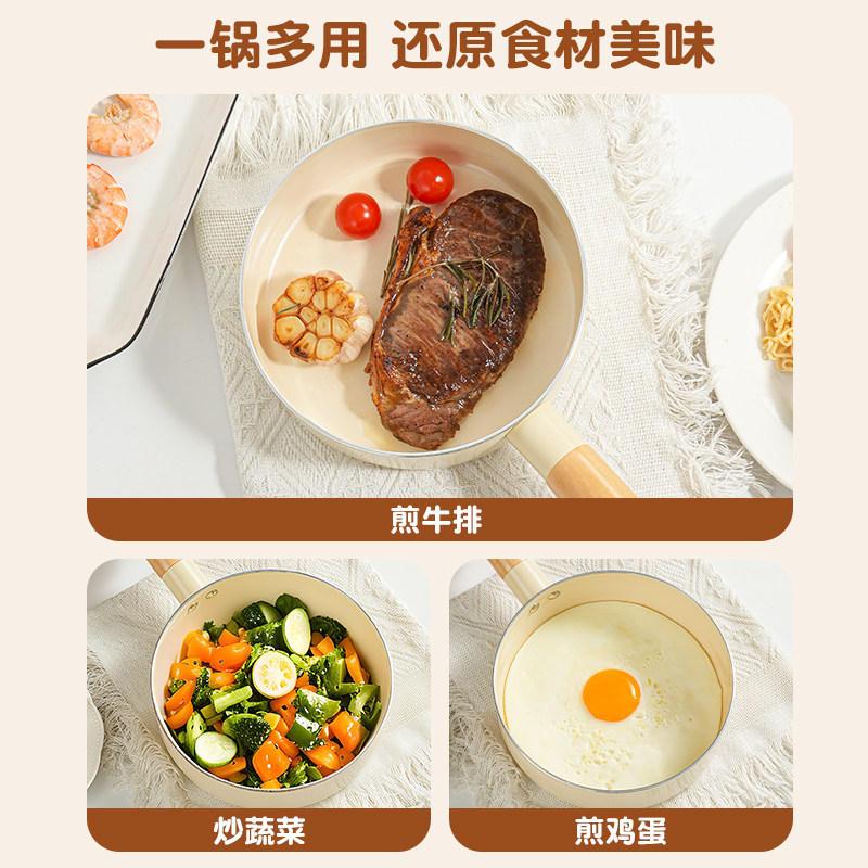 拜格婴儿辅食平底锅不粘锅家用陶瓷涂层宝宝专用小煎锅电磁炉通用