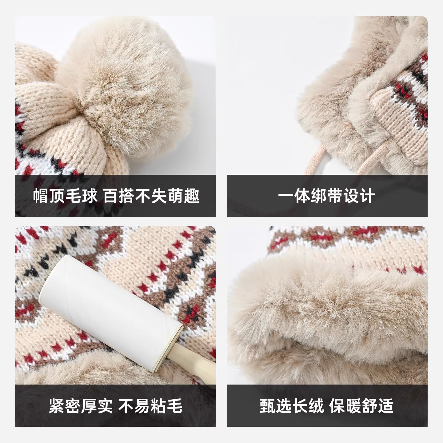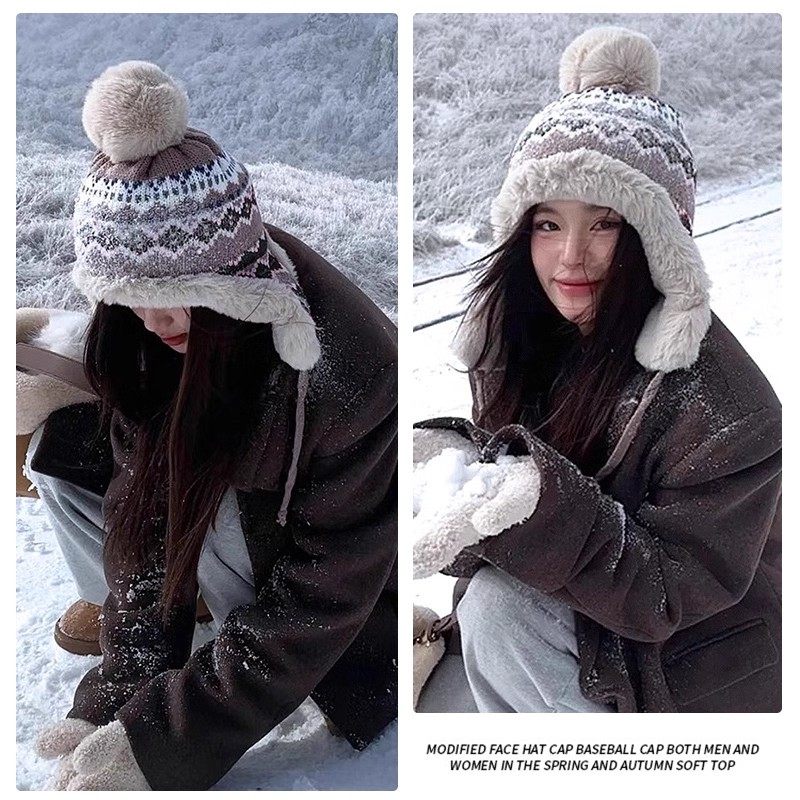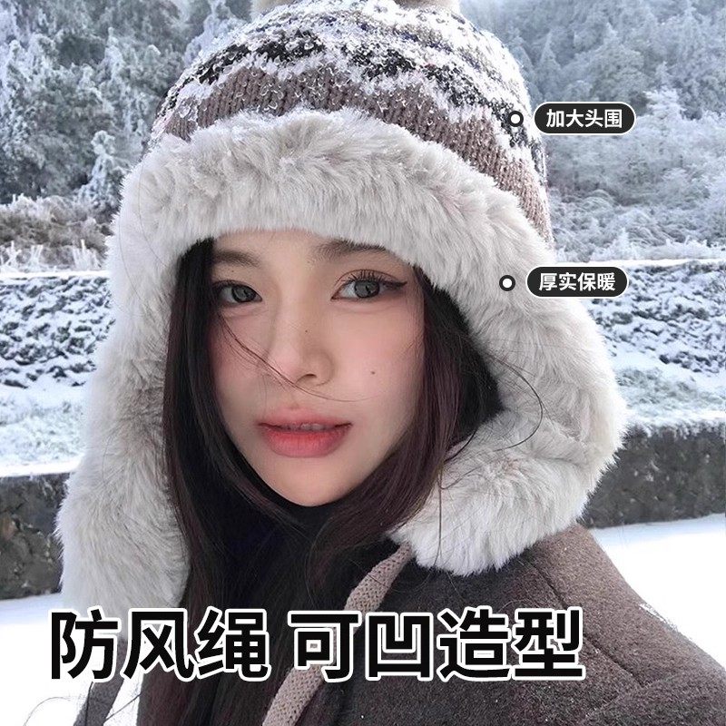 帽子女冬季费尔岛风针织毛线帽保暖加绒加厚东北防寒帽护耳雷锋帽
