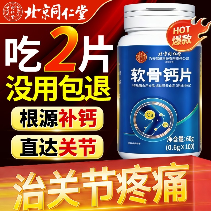 北京同仁堂软骨钙片中老年人腿抽筋腰腿疼骨质疏松旗舰店正品增加