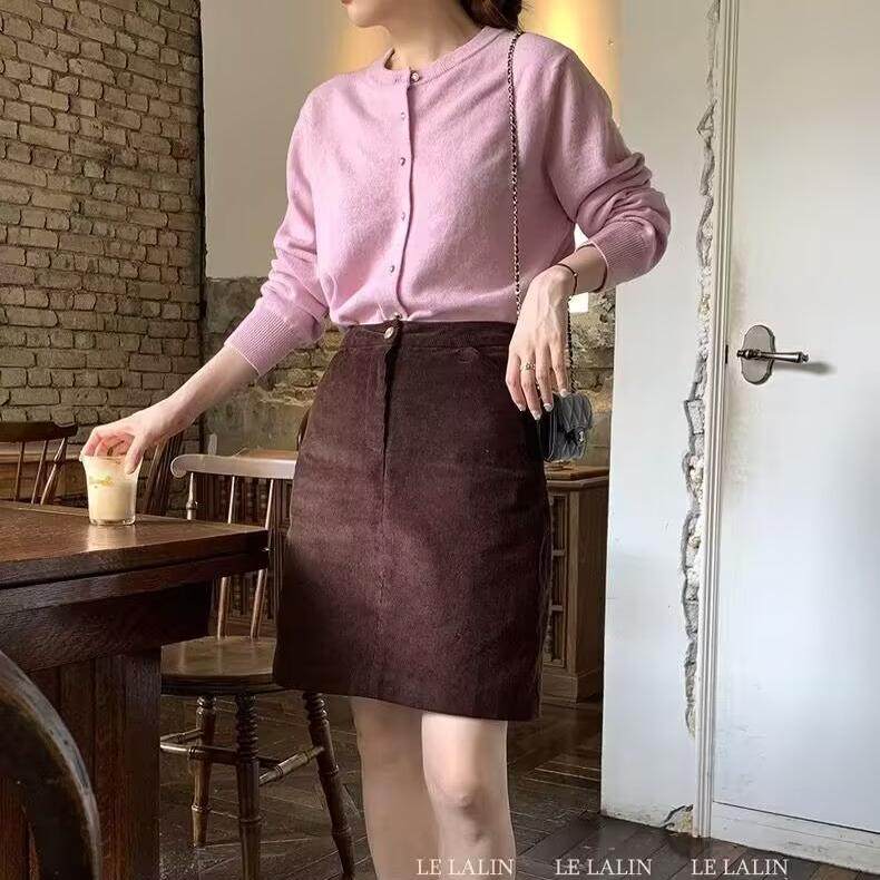 大码咖色灯芯绒半身裙女中裙秋冬高腰显瘦a字半裙防走光包臀短裙