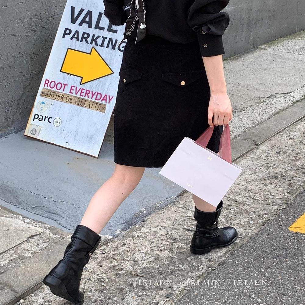 SIINSIIN直筒裙加绒2025年新款高腰收腹半身裙女黑色显瘦A字裙tk
