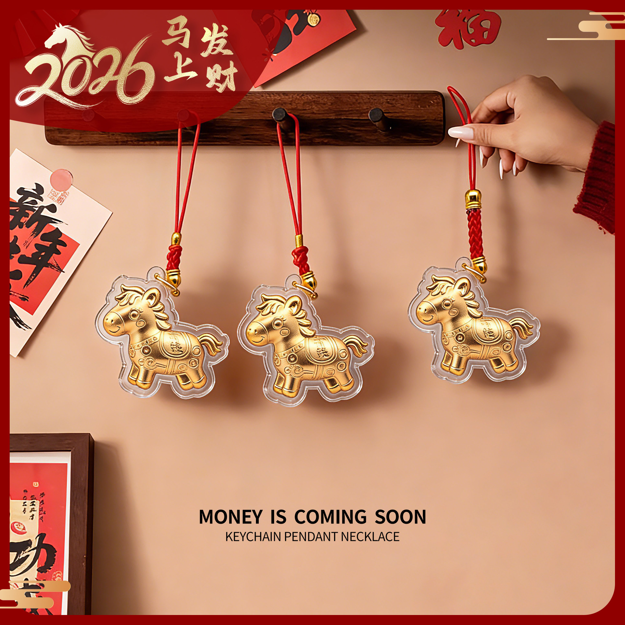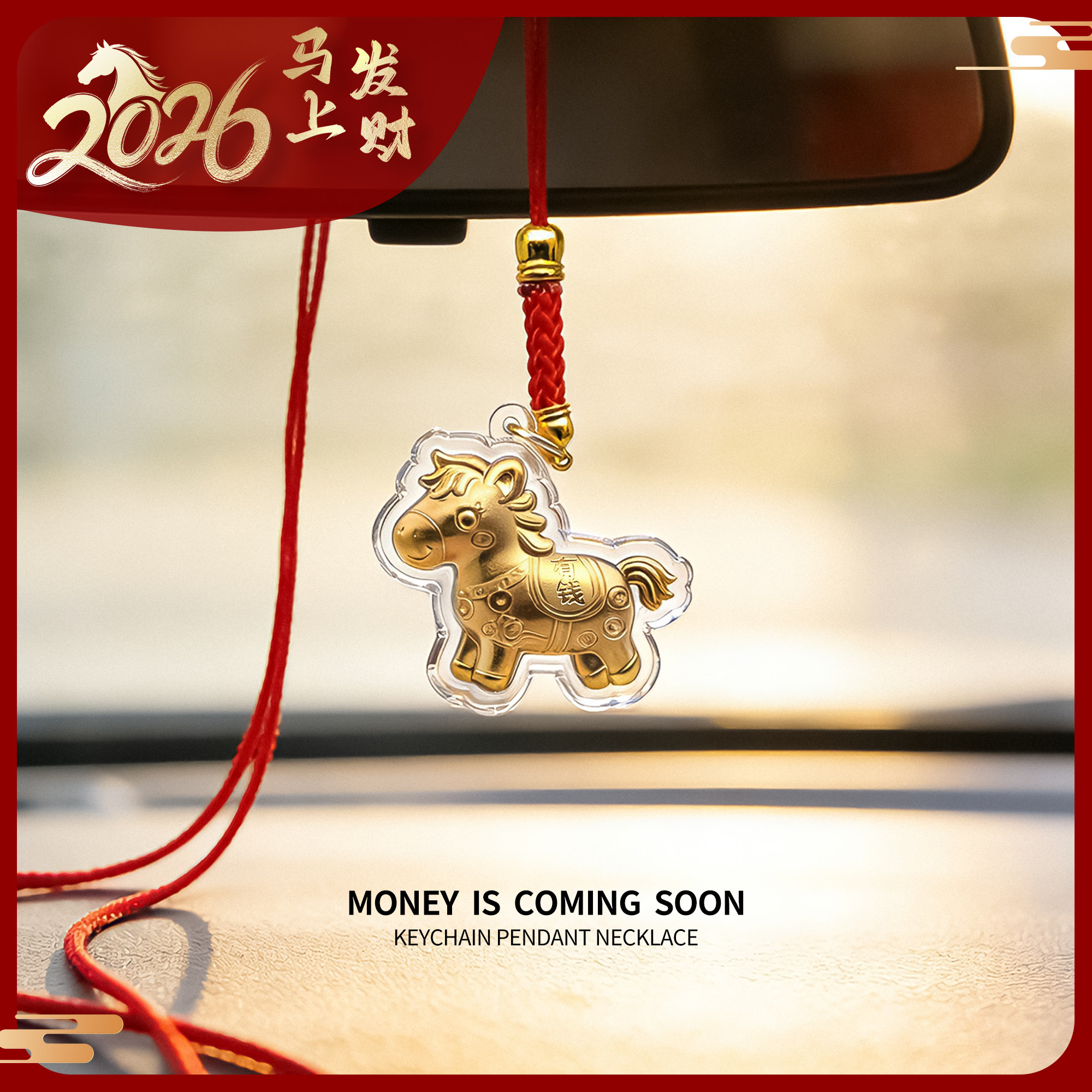 2026马上有钱小马手机链挂件卡通钥匙扣包包挂饰车挂饰黄金爆款礼物马年挂件足金999手机链女友伴手礼物