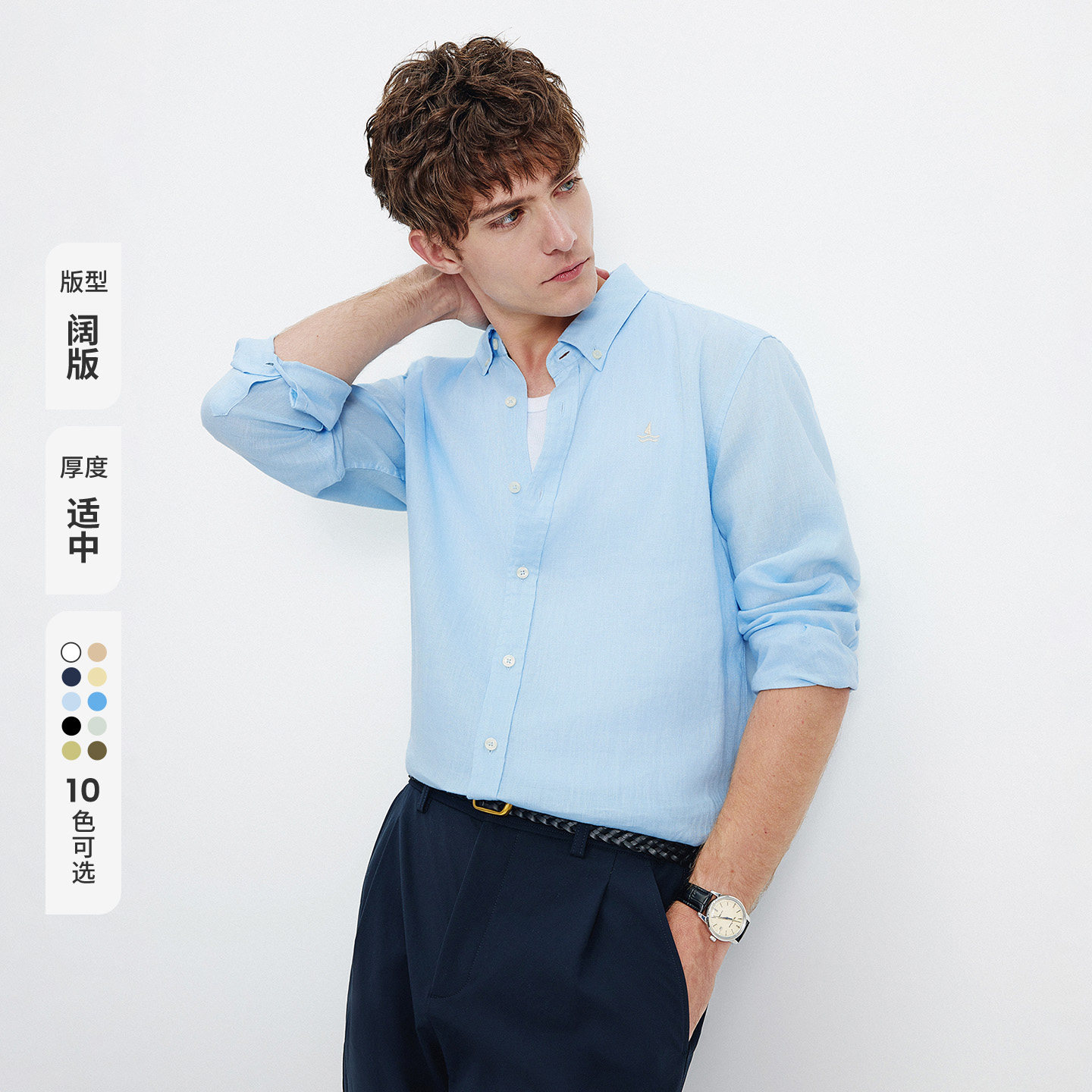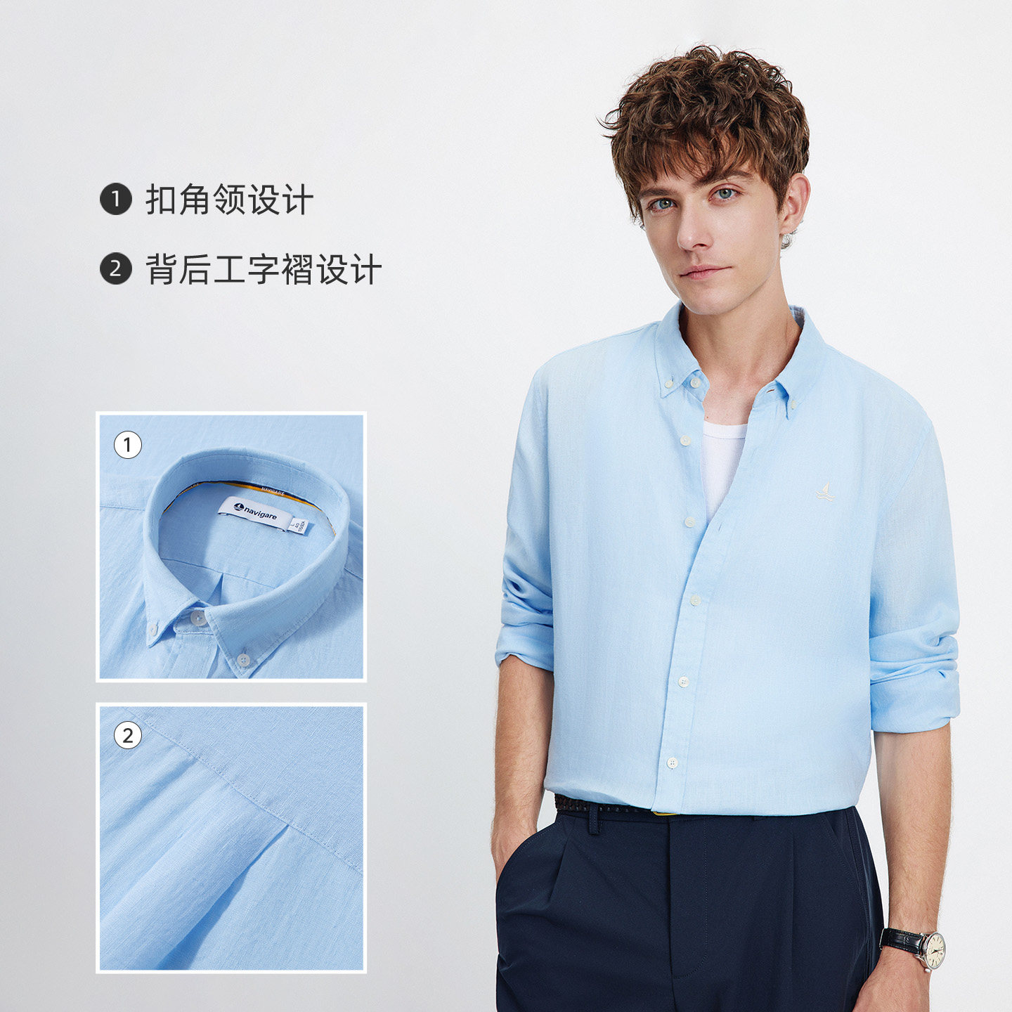 Navigare意大利小帆船老钱风亚麻长袖衬衫男2026春季宽松开衫衬衣