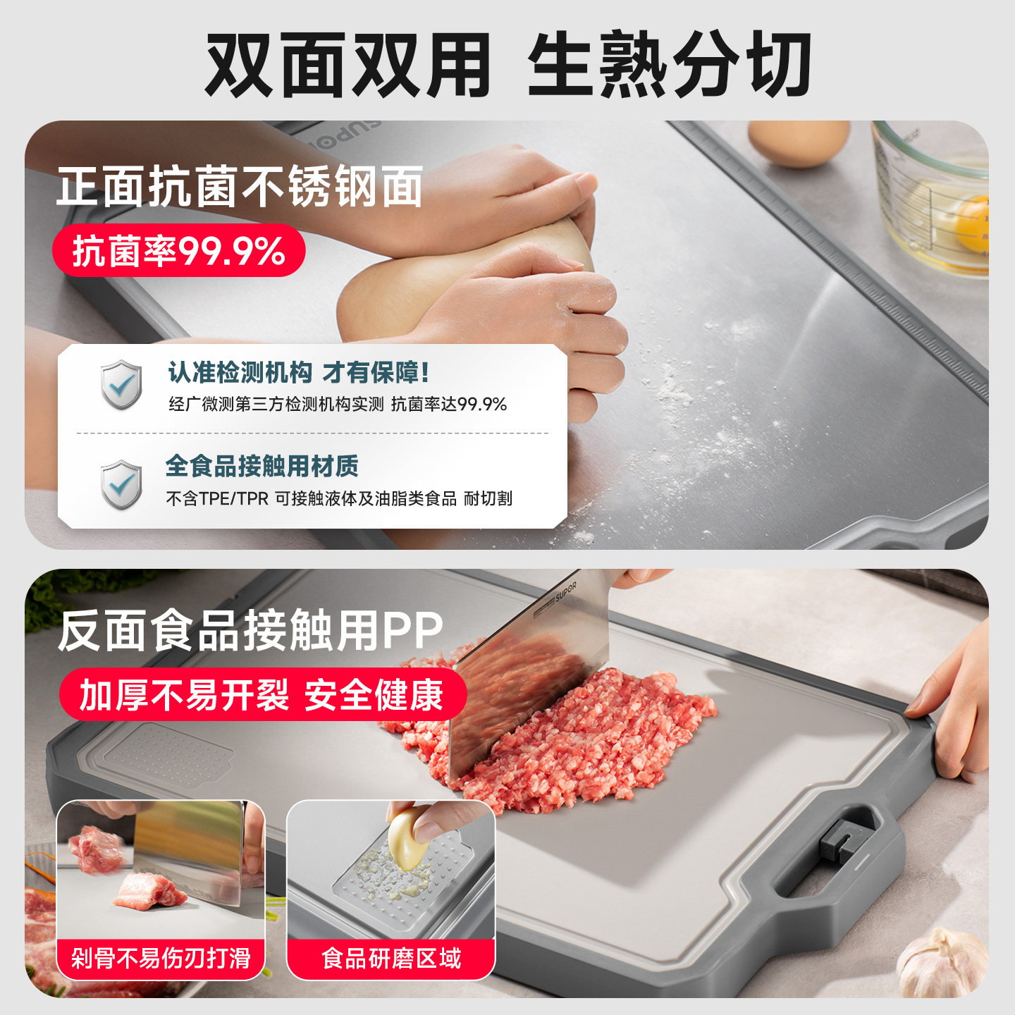 苏泊尔菜板抗菌防霉家用刀粘板案板切菜板不锈钢双面厨房可立砧板