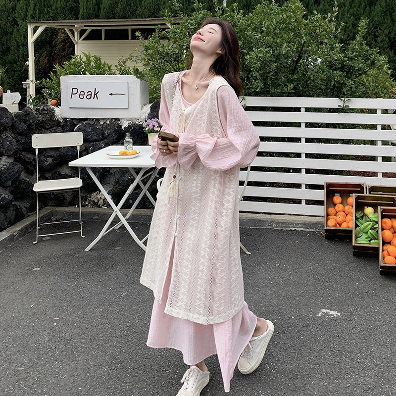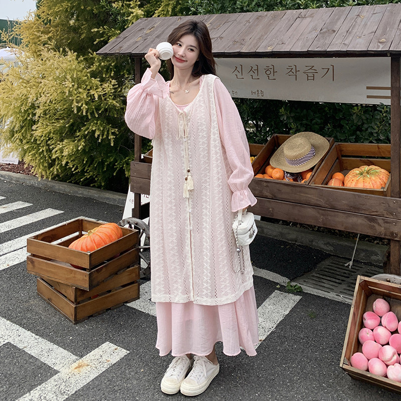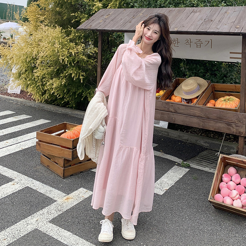 one more2026年春季新款长袖休闲宽松套头连衣裙套装粉色女士甜美