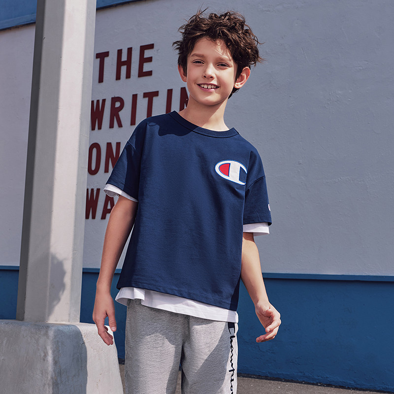 【凉感科技】Champion冠军夏季男女童亲子新款经典运动短袖T恤