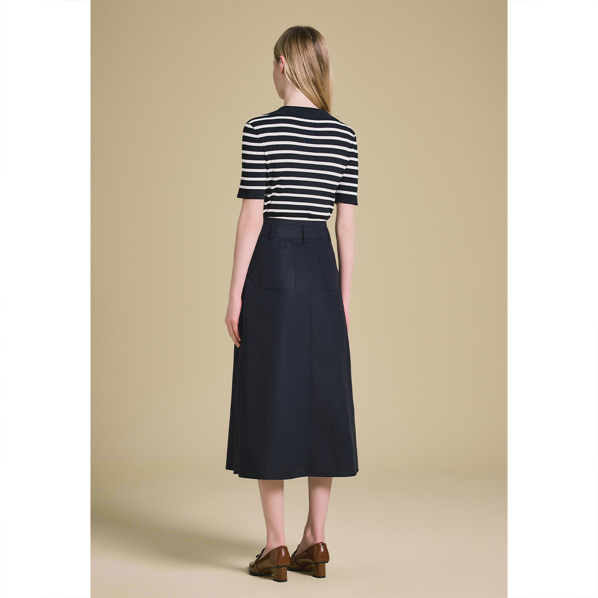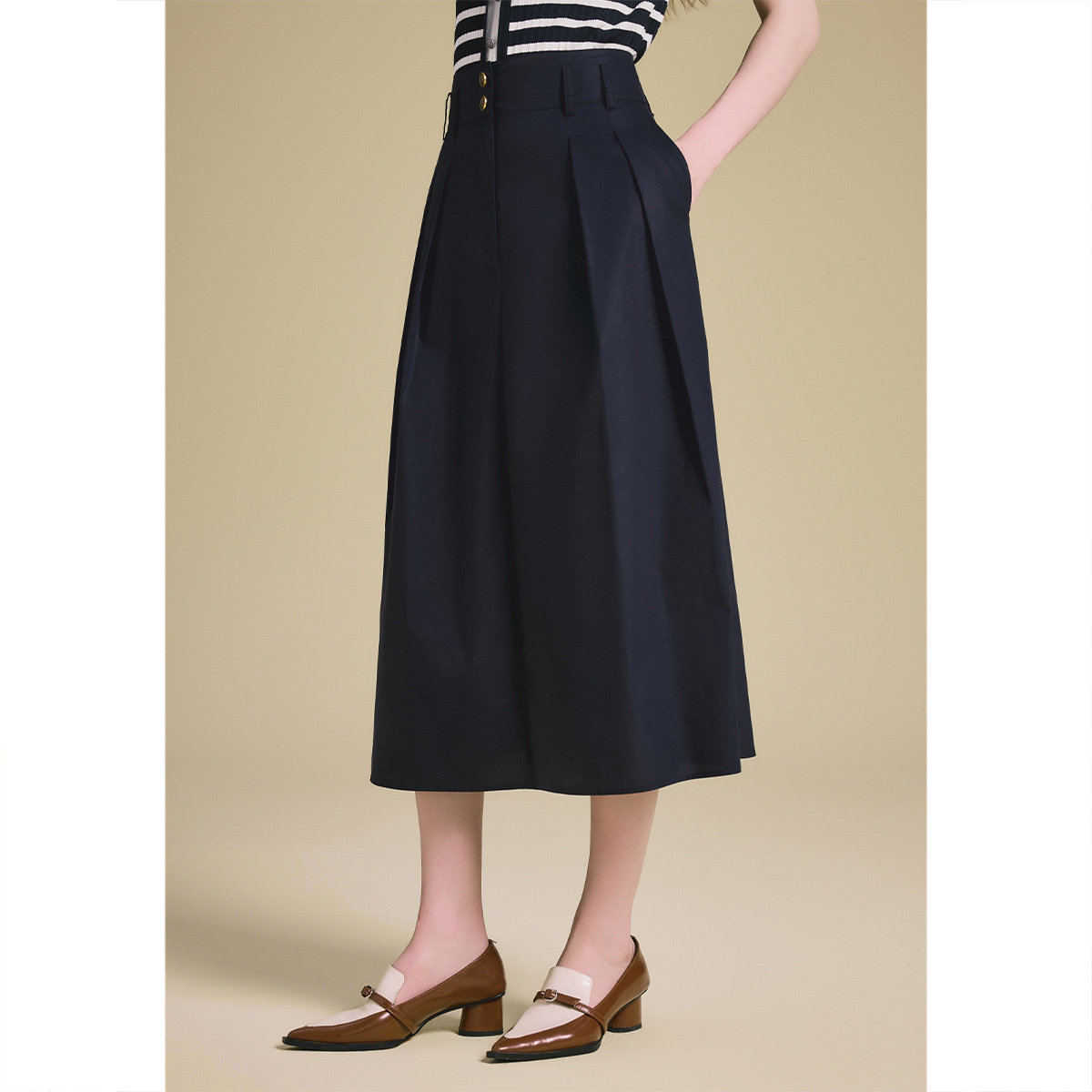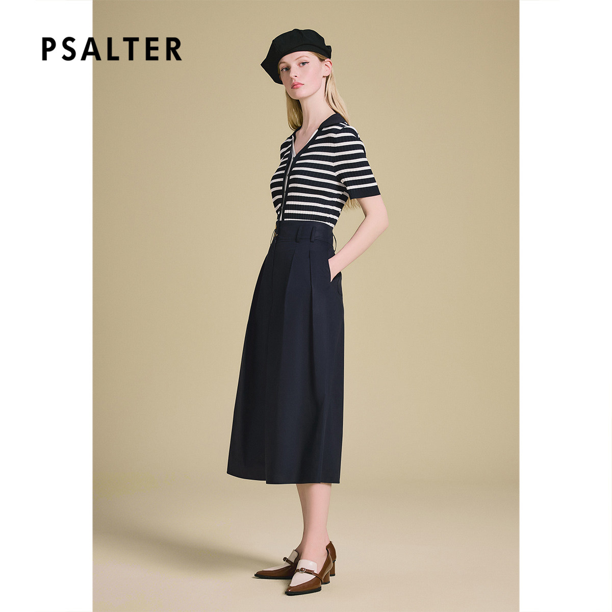 PSALTER诗篇高腰休闲百搭挺括不易皱A摆半身裙2025夏季新款