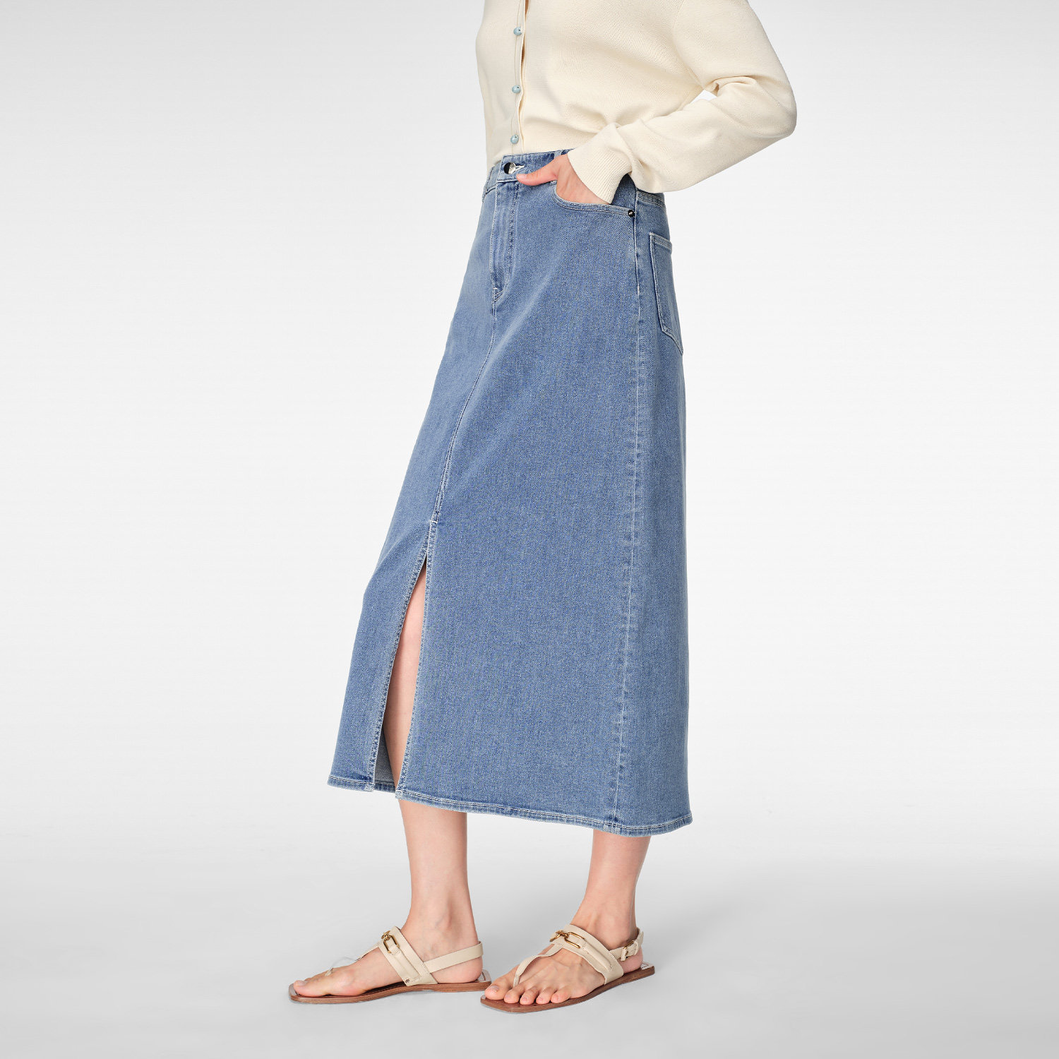 OVV春夏热卖女装意大利进口面料简约A字开衩牛仔半身裙