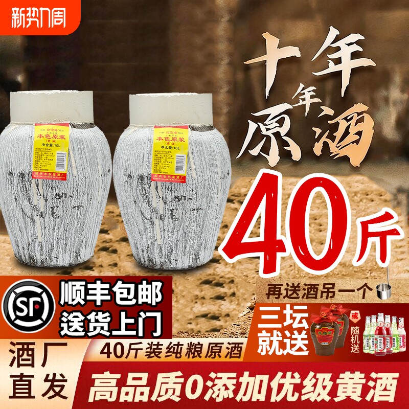20斤正宗绍兴黄酒10L坛装十五年陈15度老酒0焦糖十年本色糯米纯粮