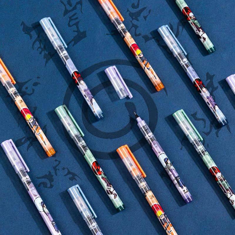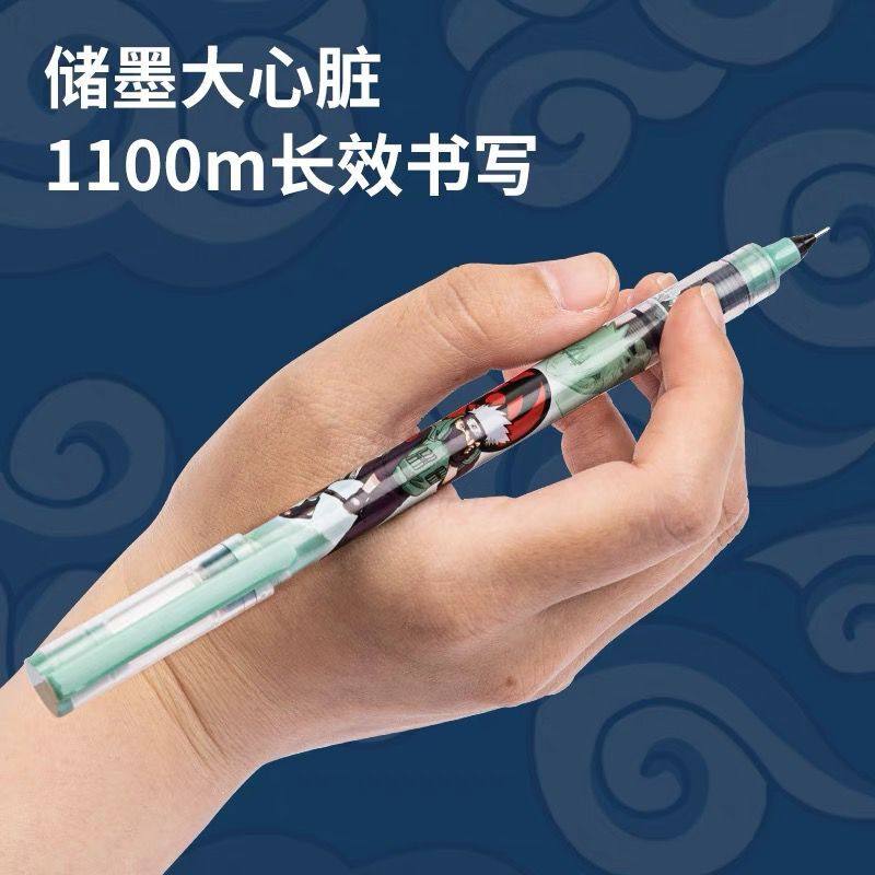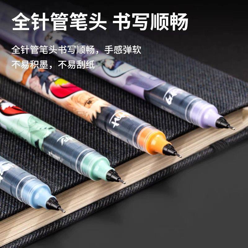 得力直液式走珠笔火影忍者全针管大容量速干中性笔0.5mm学生用碳素签字水性ins日系冷淡风考试专用黑色