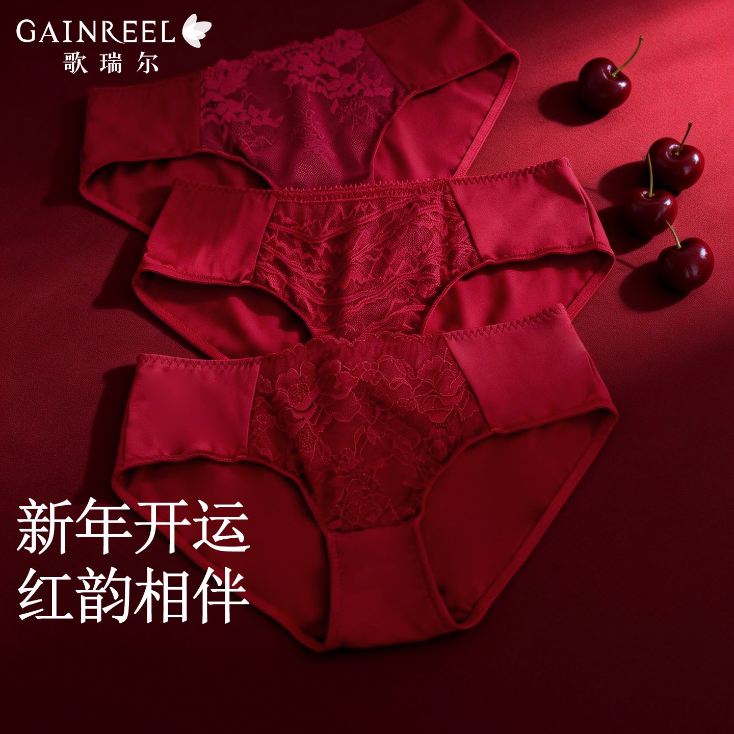歌瑞尔性感蕾丝本命年红色内裤女薄款透气新婚结婚中腰平角裤衩