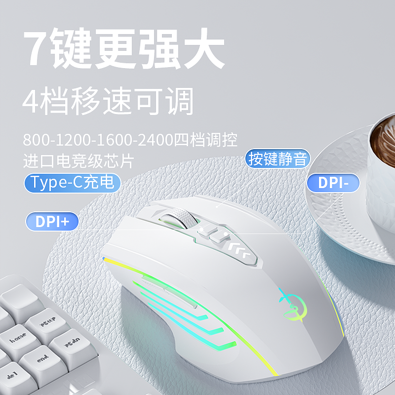 英菲克F9机甲版无线鼠标可充电无声静音电竞游戏笔记本通用typec
