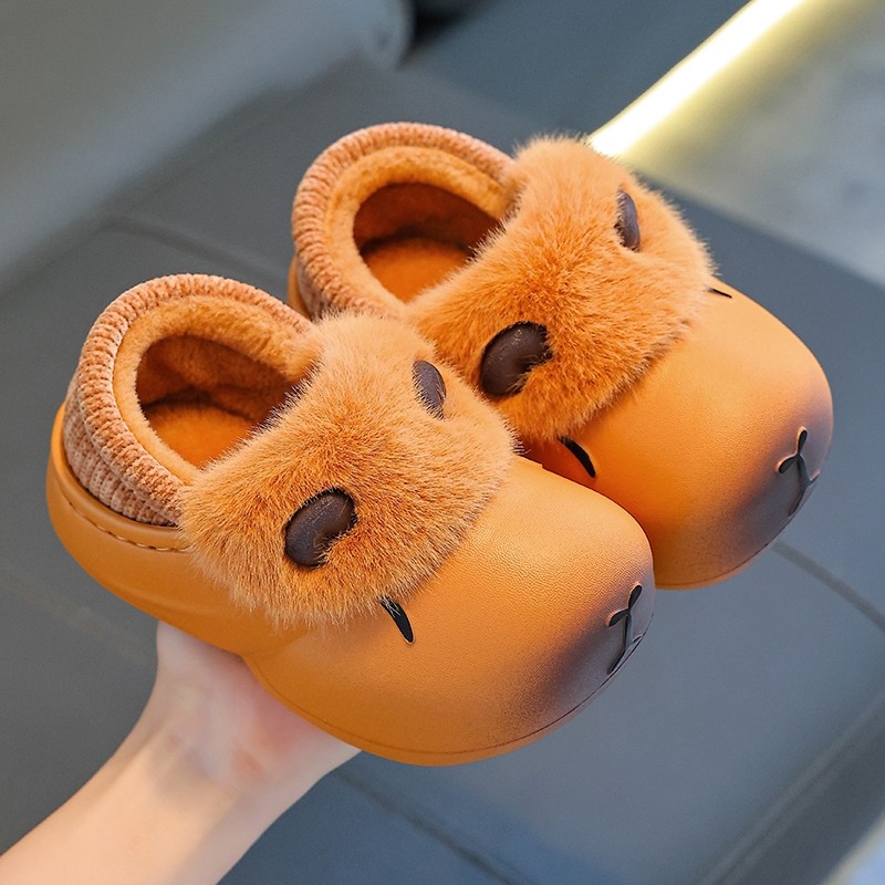 卡皮巴拉儿童棉拖鞋包跟男童卡通可爱防水防滑室内亲子宝宝拖鞋冬