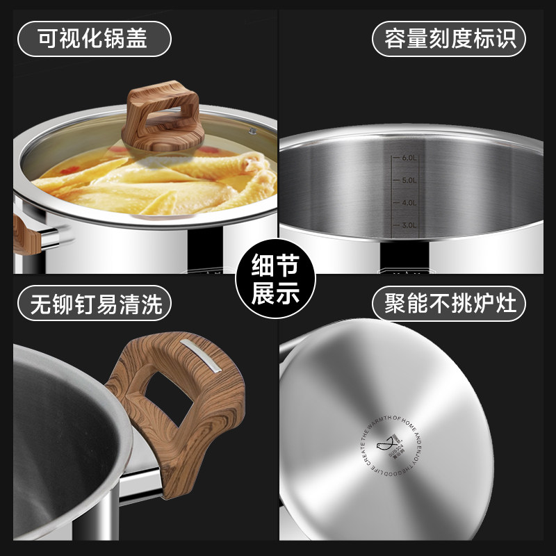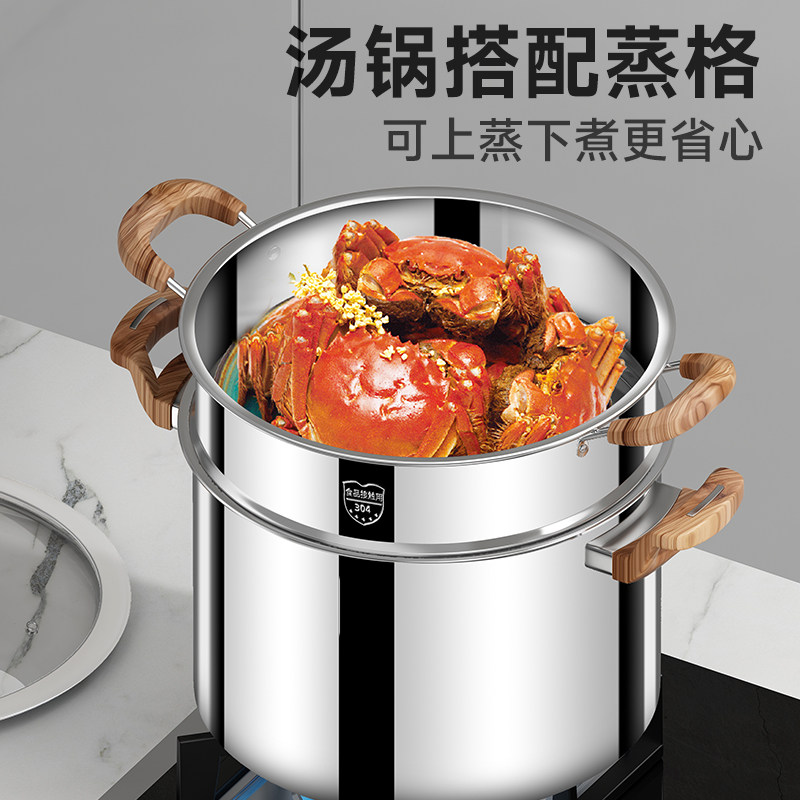 特厚高汤锅304不锈钢食品级加深汤锅家用大容量双耳蒸锅炖汤锅