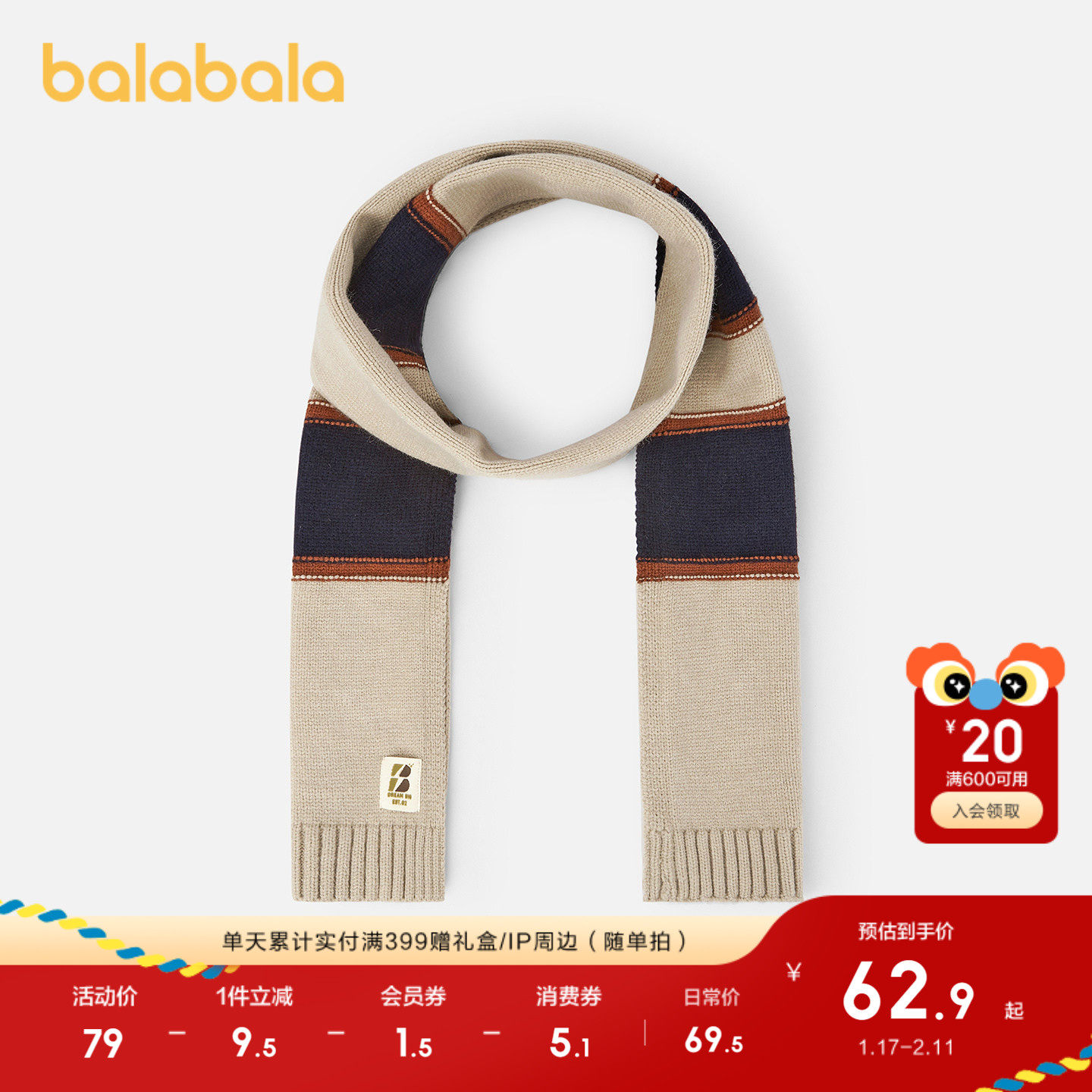 伊米伦冬季宝宝围巾6个月-6岁男童女童保暖针织围巾断码捡漏系列