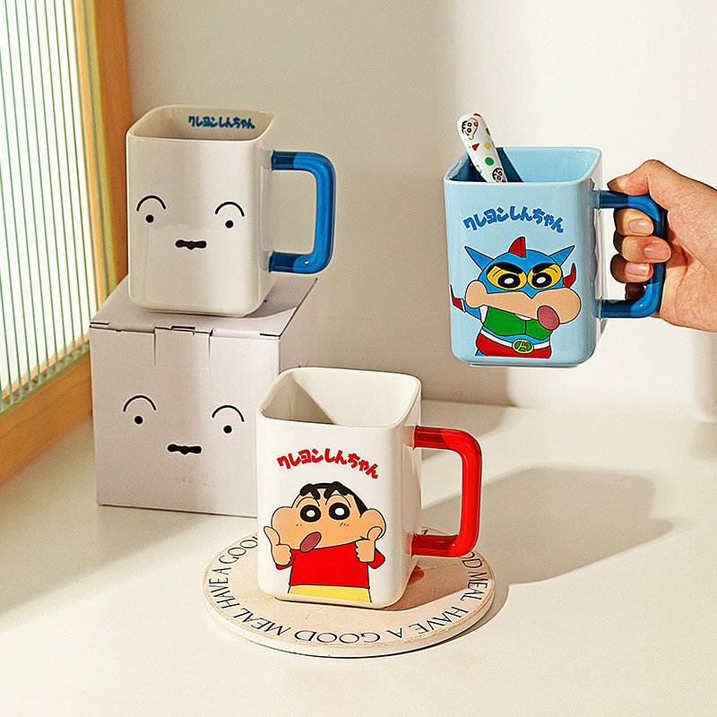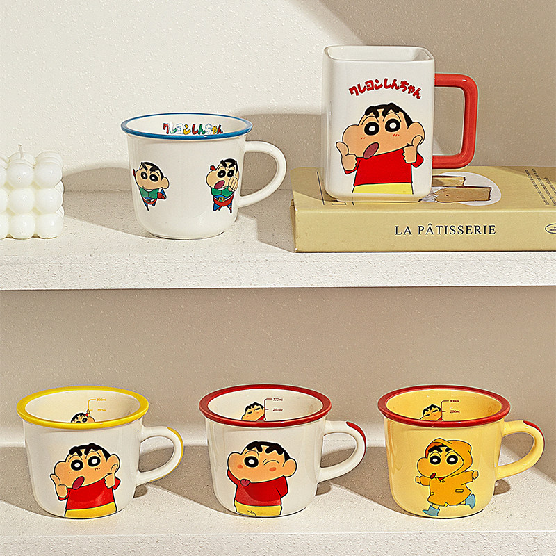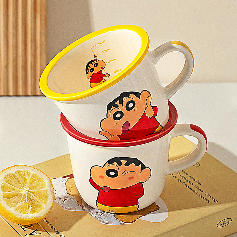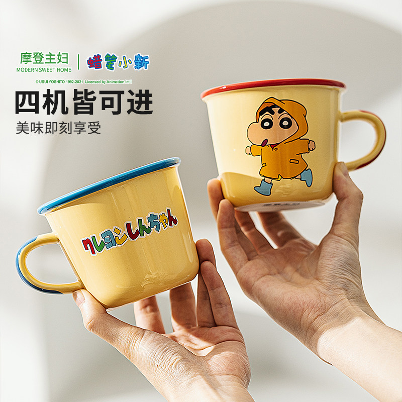 【摩登主妇&蜡笔小新】带刻度马克杯家用水杯儿童陶瓷杯子早餐杯