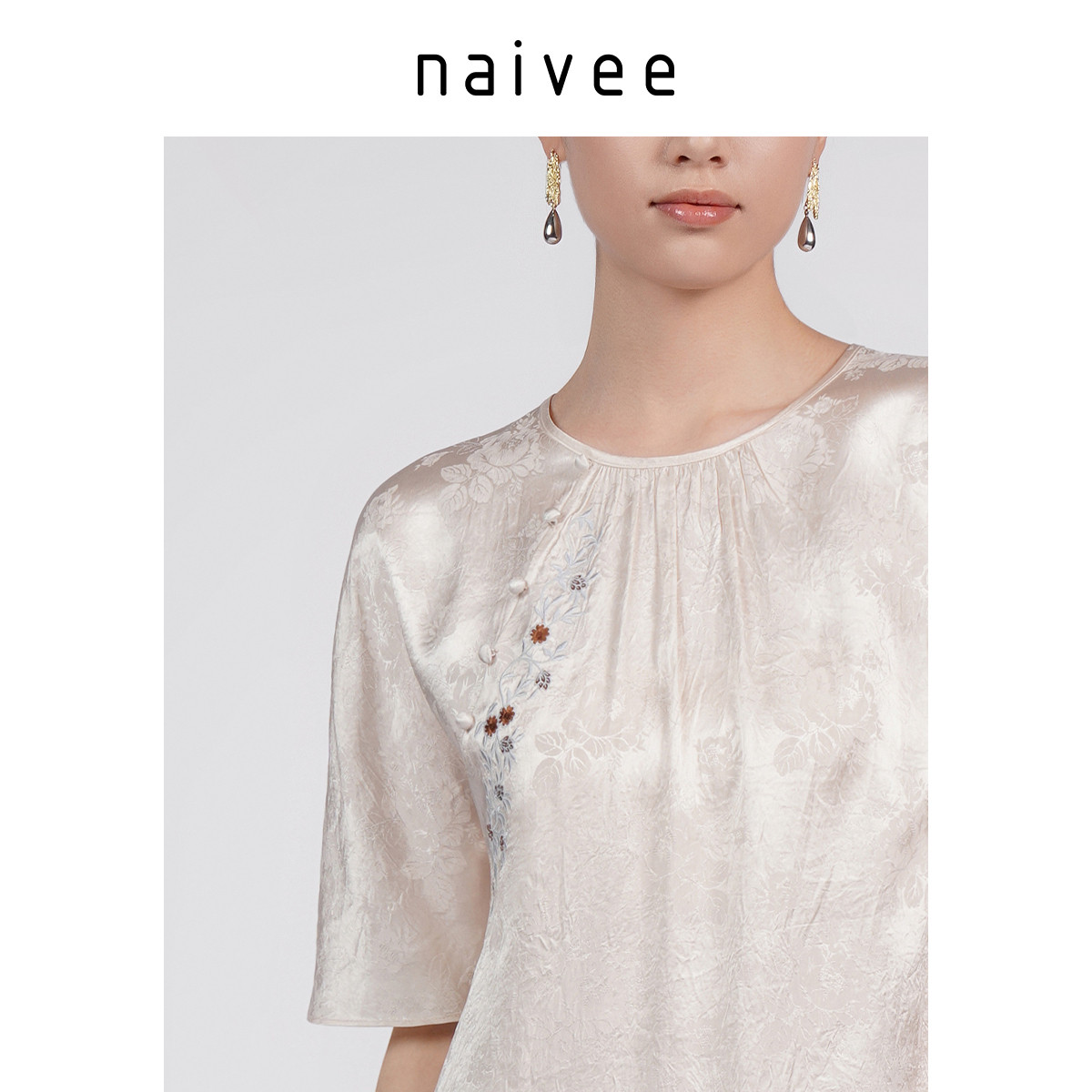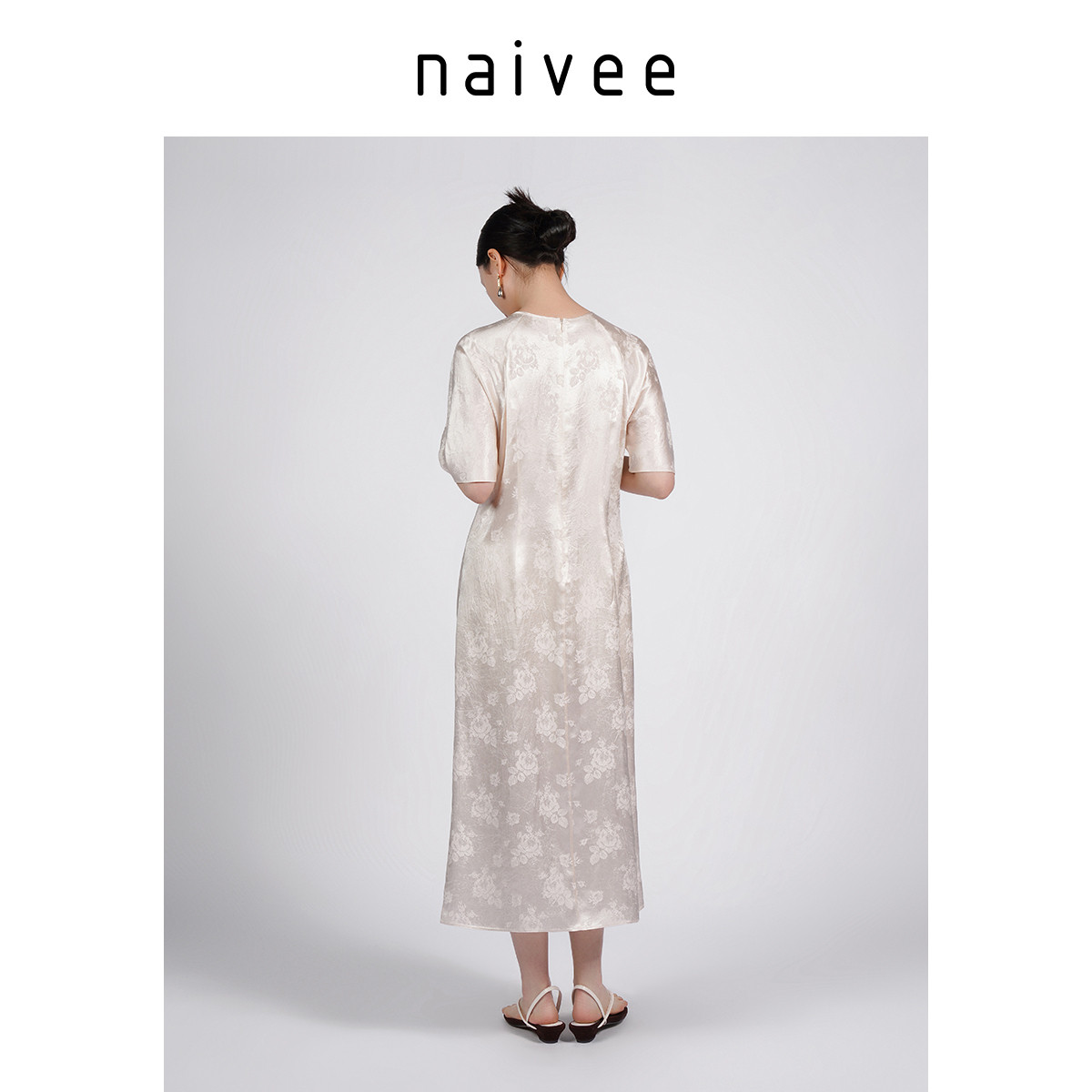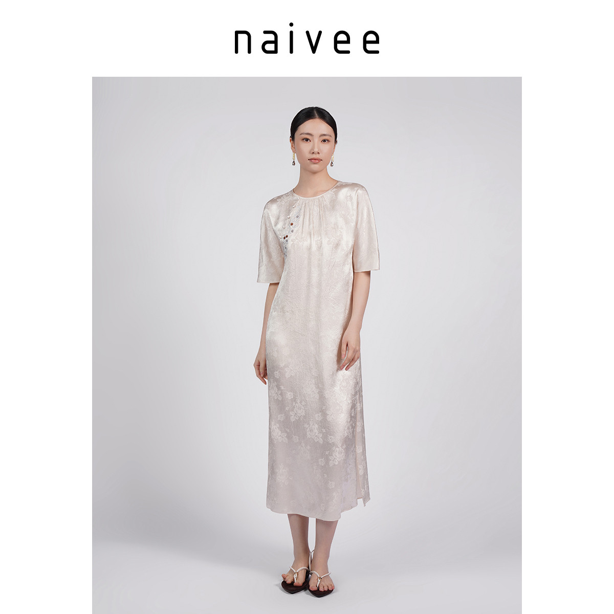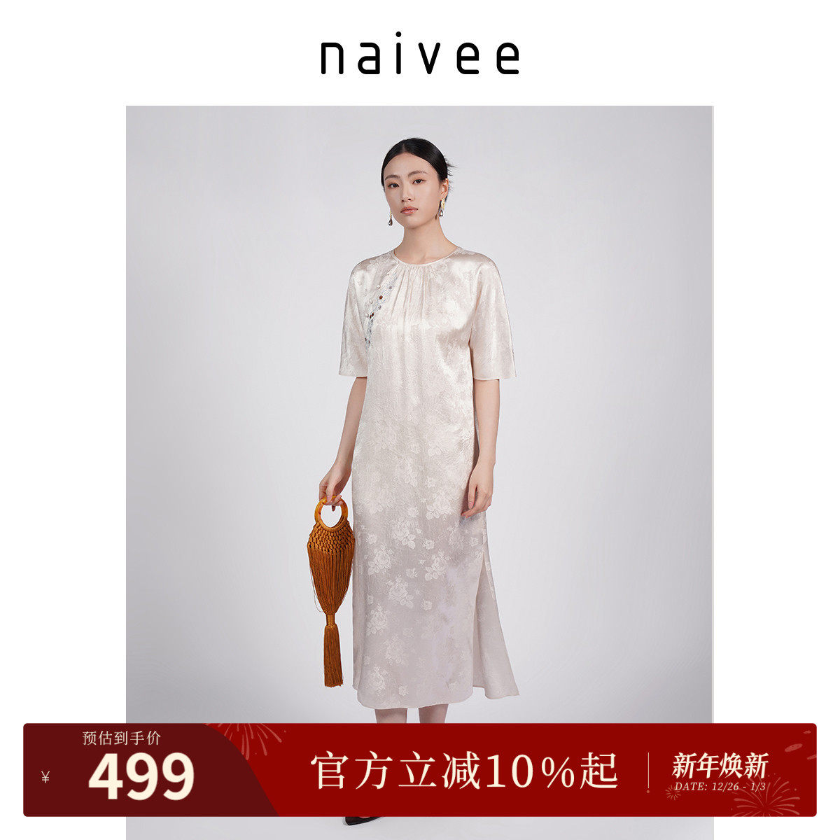 【醋酸提花旗袍裙】naivee纳薇新中式国风改良刺绣连衣裙25夏新款
