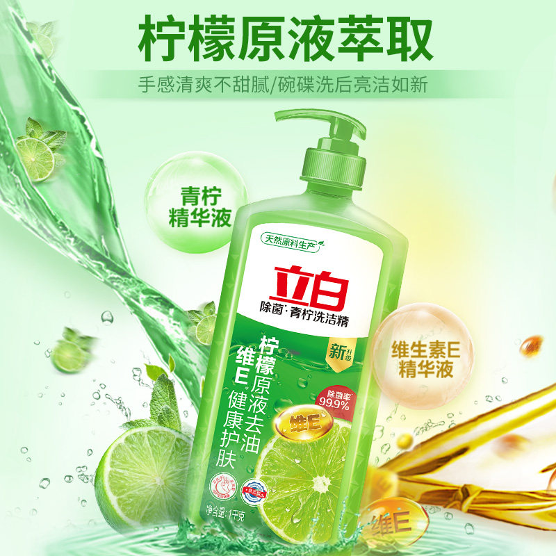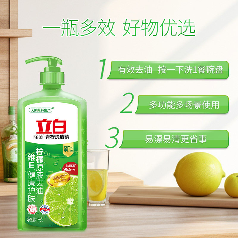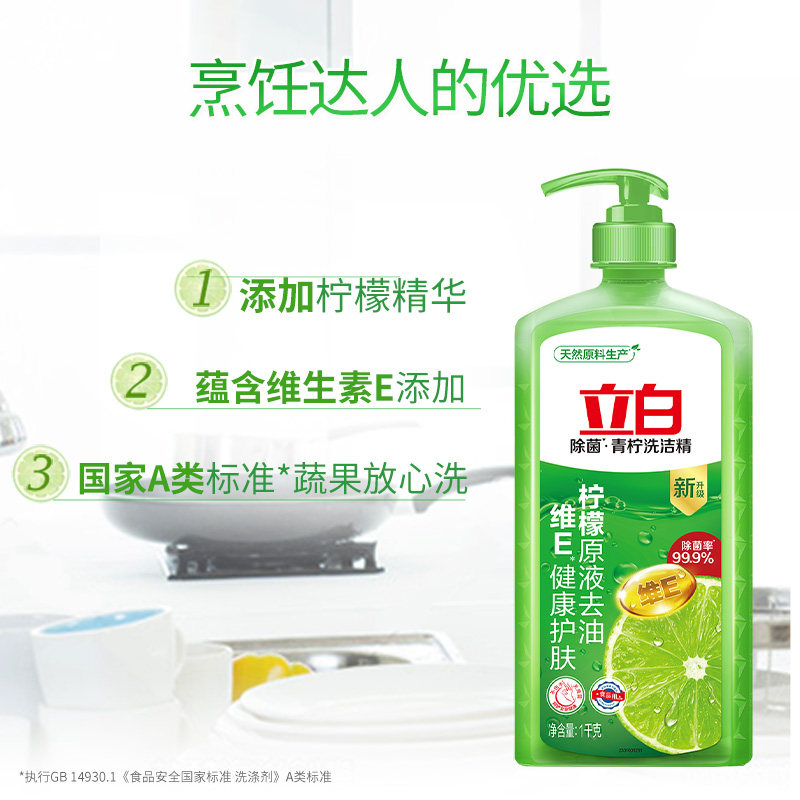 立白天然青柠洗洁精果蔬净A类食品用维E护肤去重油不伤手去油清洁